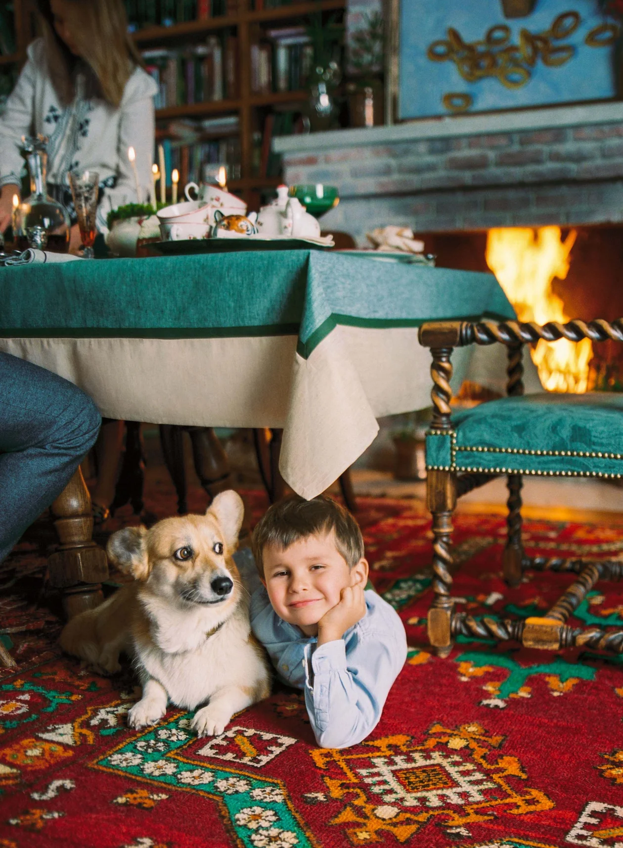 С младшим сыном Сергеем и любимым корги. Вадим много лет собирает книги по истории, а в 2024-м вместе с друзьями издал собственную — «Суздаль. 1000».