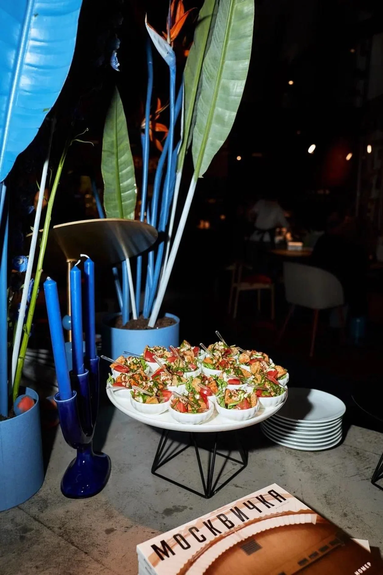 Закончилась экскурсия фразой «танцуйте и будьте счастливы» и ответами на вопросы гостей. Беседу по традиции сопровождали игристое и закуски от кафе «Ришон». Сет-дизайн наша студия Element разработала, вдохновившись Малевичем и его геометрией.