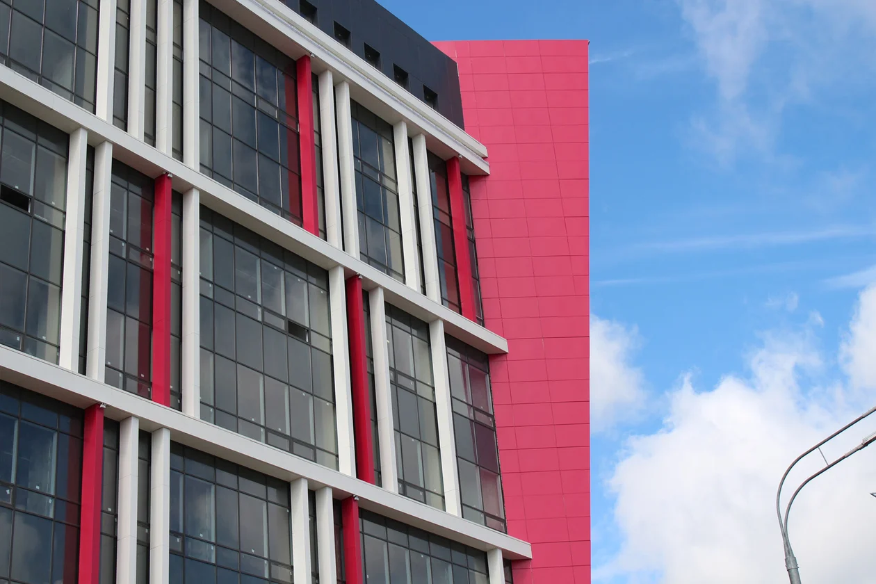 В 2025 году завершилось строительство Московского центра фотоники. Отделка фасада, ставшая частью визуального кода ОЭЗ «Технополис Москва», сразу привлекла общее внимание. В проекте использовали сочетание черного, белого и красного цветов, акцентируя внимание на деталях через линии и объемы. А эргономичность прослеживается как в планировочных решениях, так и в технологических аспектах организации производства.