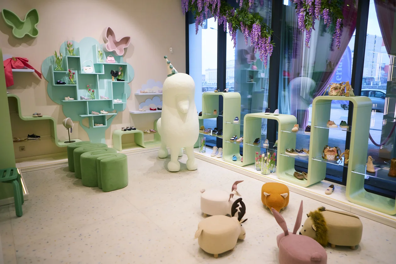 Для самых маленьких в бутике есть игровой уголок с аниматором, какао и сладкой ватой — всё, что нужно для спокойного шопинга родителей!