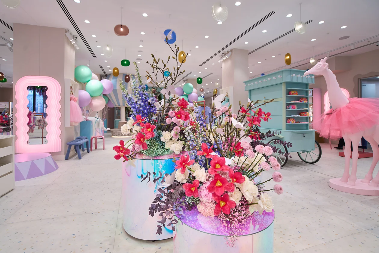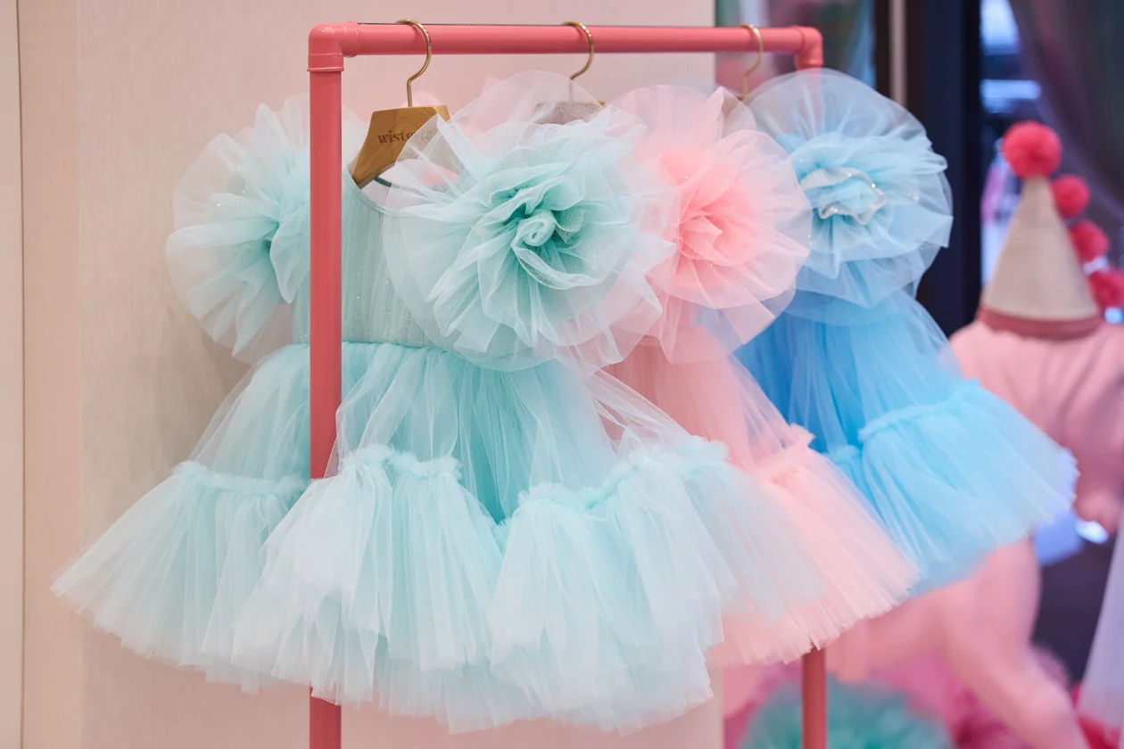 Собравшиеся оценили атмосферу бутика и интерьер в нежно-пастельных цветах. Это ощущение усиливали люстры в виде леденцов и большой воздушный шар, на котором, казалось, можно улететь в волшебную страну.