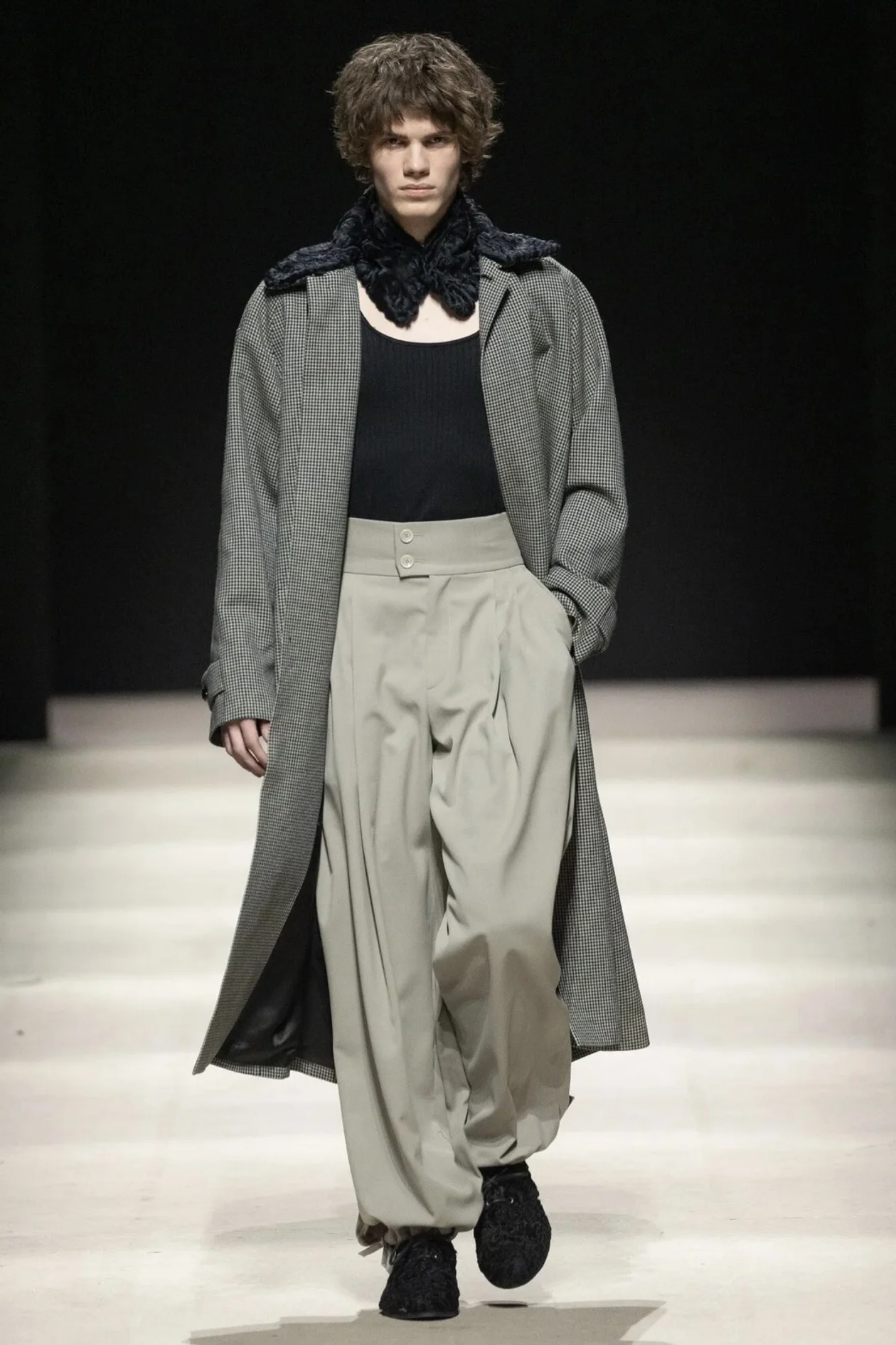 Дизайнер Леонид Алексеев переместил гостей в эпоху old money и петербургского шика: теперь мы знаем, что будут носить настоящие денди в новом сезоне. Основной акцент сделан на свободные костюмы с пиджаками с подчеркнутыми плечами разных цветов, будь то элегантный total-white или благородный изумрудный. В коллекции Indulgence активно использовались камербанды (широкие пояса поверх костюмов), жаккард и, конечно же, твид, без которого невозможно представить эстетику тихой роскоши. А еще подсмотрели, как стильно завязывать шарф, чтобы сохранить аристократичный флер. Завершилось дефиле образами с классическими смокингами — напоминание о том, что истинная элегантность вечна.