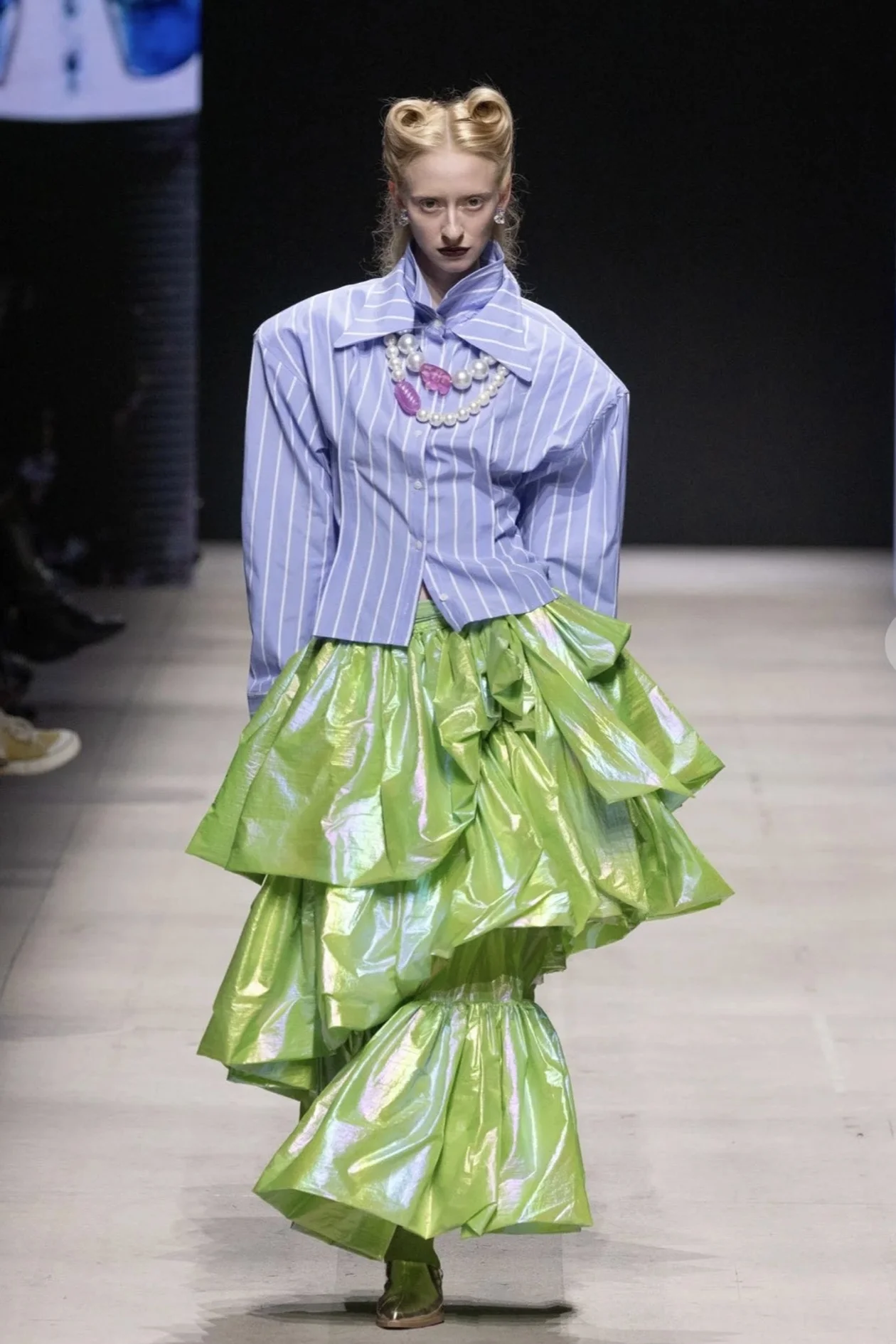 Редакция отметила черные футуристичные модели, которые после начали чередоваться с ироничными и даже местами кукольными образами.
