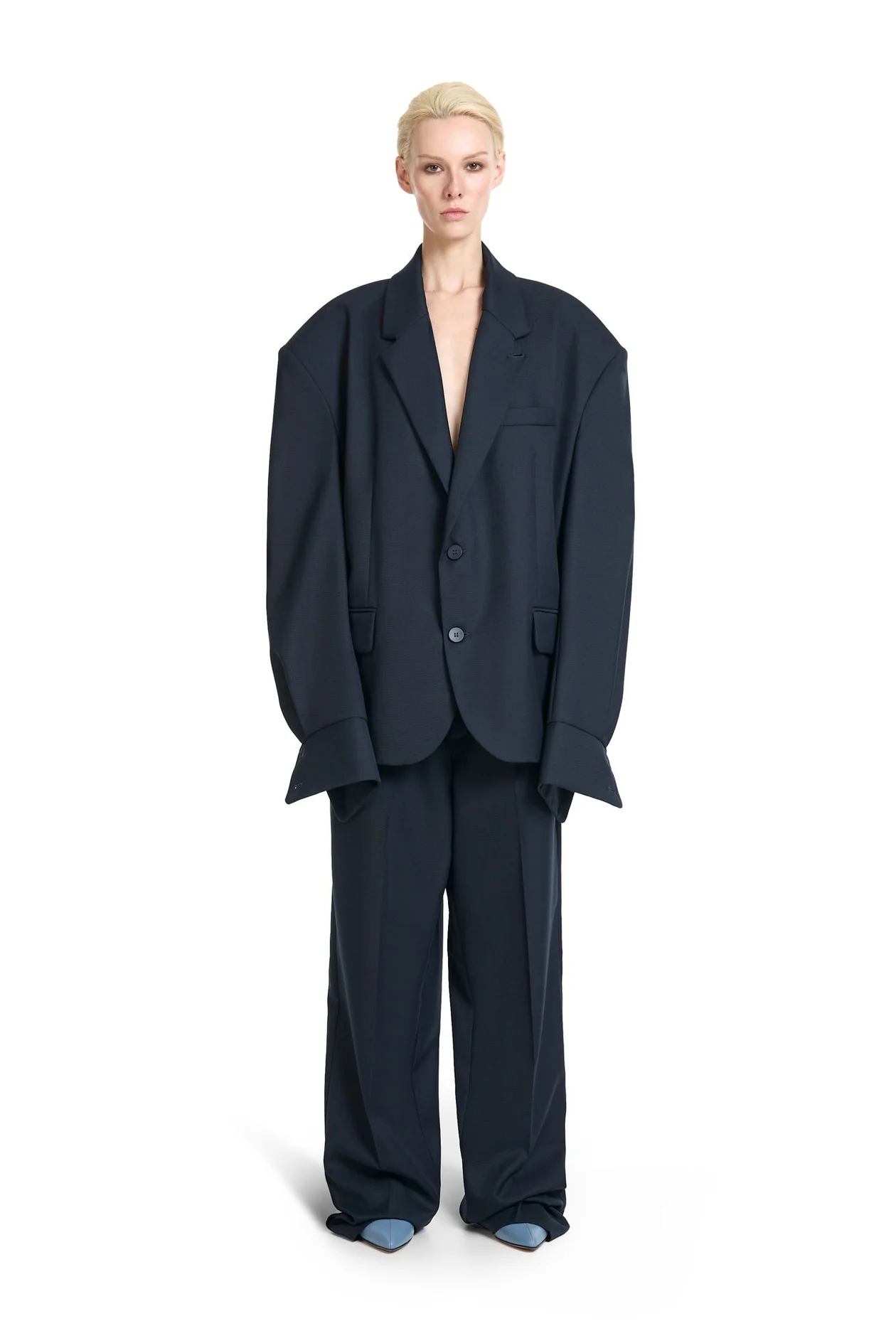 В annuko любят сочетать несочетаемое, а мы любим то, как у них это получается. Вот и пиджак у екатеринбургского бренда не абы какой, а скрещенный с сорочкой: акцентные рубашечные рукава ломают привычный силуэт и передают знакомому сюжету неожиданное и крайне любопытное звучание. Что до брюк, то они вполне классические, ведь главное в любом эксперименте — не хватить через край. Отдельный лайк — за красивейший полуночно-синий оттенок.