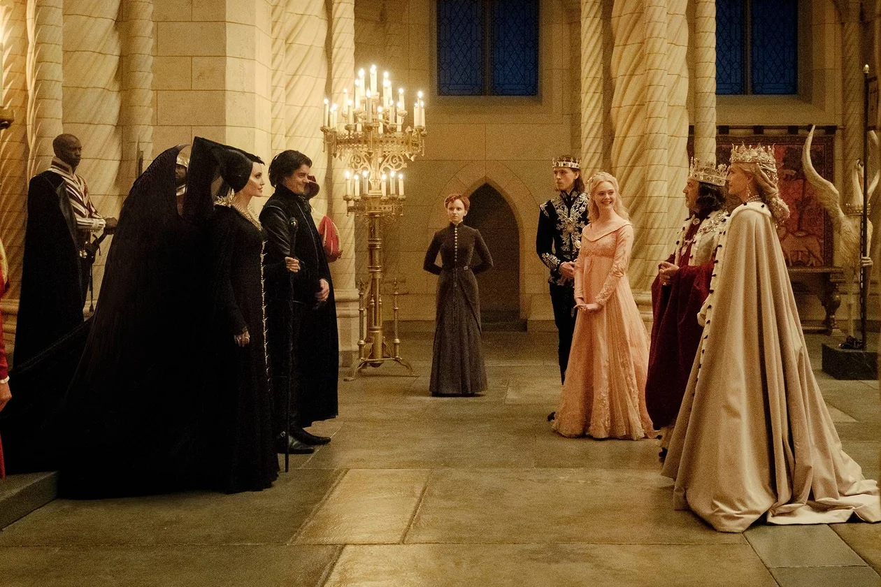 Если действие диснеевской «Круэллы» происходит в реальном мире, подчиняющемся физическим законам, то киноверсии анимационных сказок могут позволить себе самые фантастические наряды. Как правило, лучшие костюмы достаются положительным героям, как это было в «Золушке» 2015 года, но в фильме Роберта Стромберга «Малефисента» в центре внимания оказывается злая фея в исполнении Анджелины Джоли. Стоит уточнить, что злая она только по вине других, а в отношениях с принцессой Авророй — любящая материнская фигура (не считая, конечно, проклятия, наложенного на девочку в колыбели).