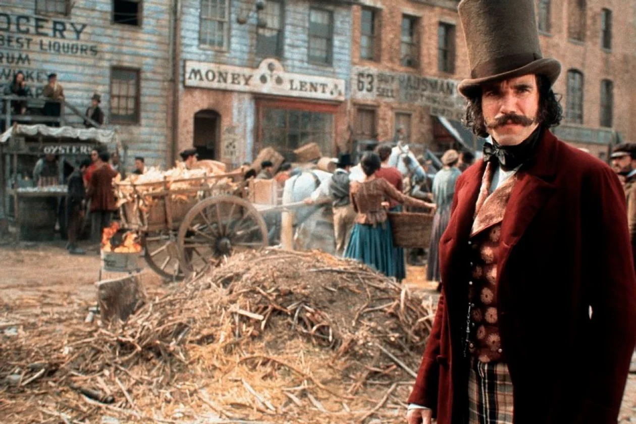 Главные роли в исторической драме 2002 года сыграли Леонардо Ди Каприо, Камерон Диас и Дэниел Дэй-Льюис. Именно последний воплотил на экране антагониста — Уильяма Каттинга, прозванного за свою жестокость Мясником. При создании костюмов Пауэлл ориентировалась на стиль британских и американских денди середины XIX века. «Я подчеркнула рост и стройность Дэниела, удлинив его цилиндр, сделав брюки ýже, а обувь длиннее, — рассказывала дизайнер в интервью The Guardian. — Остальные члены банды были одеты в том же стиле, но не так изысканно: никто не выглядел так представительно, как Билл Мясник». Конечно, главный вклад в создание образа внес Дэй-Льюис, один из самых виртуозных актеров в истории Голливуда. Своим визуальным рядом фильм также обязан художнику-постановщику Данте Ферретти: он сотрудничал с Федерико Феллини, Пьером Паоло Пазолини и другими классиками кино.