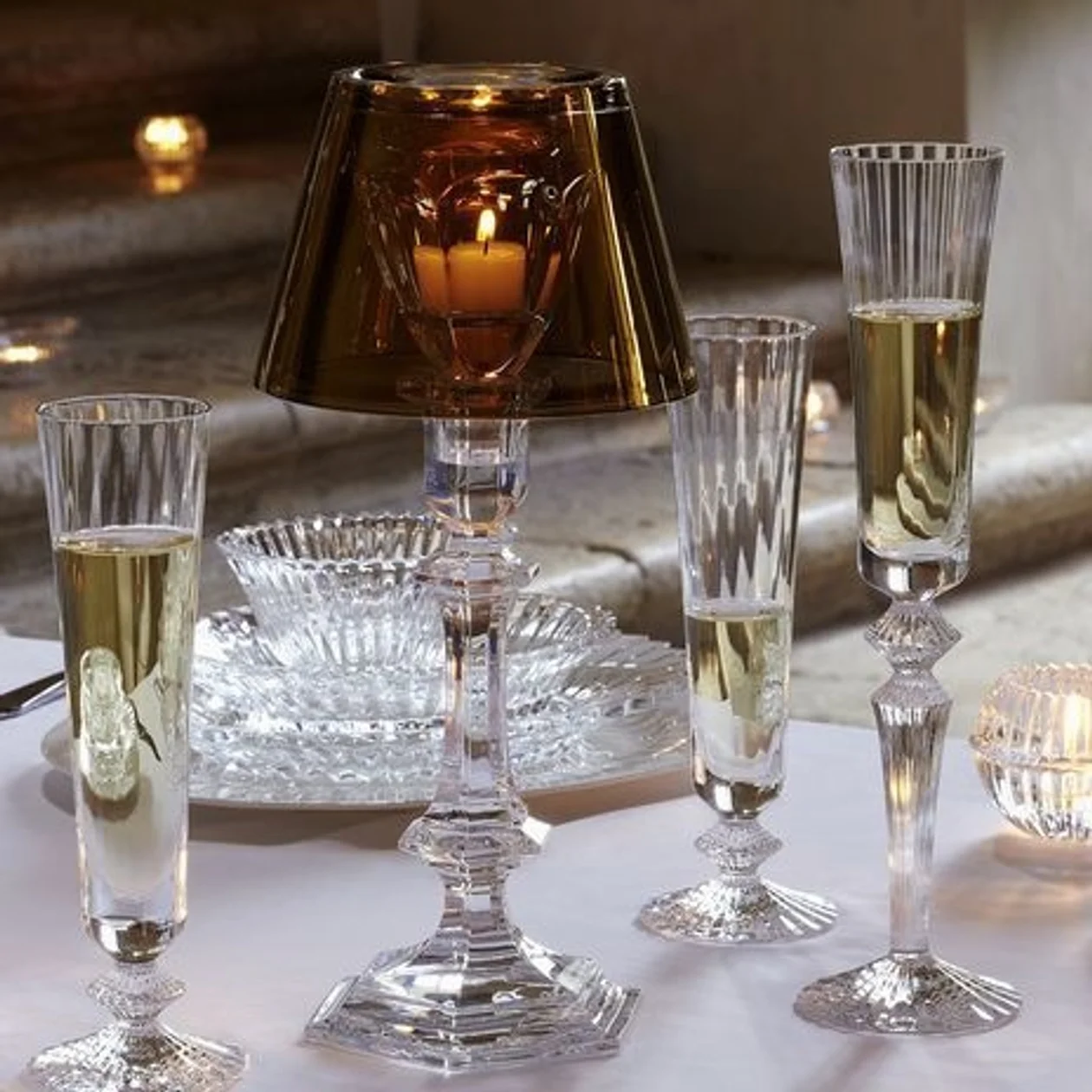 Набор фужеров для шампанского от Baccarat — вечная классика, с которой невозможно прогадать. Серия Mille Nuits вдохновлена гармонией персидской архитектуры, а насыщенный голубой оттенок изящных бокалов украсит любой новогодний стол.