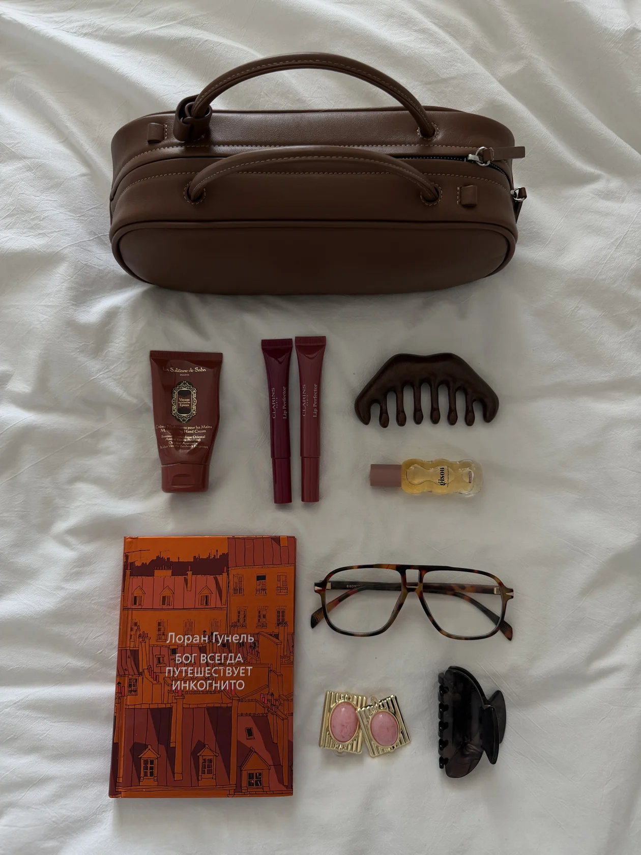 На самом деле содержимое моих сумок всегда разное: их у меня очень много, и я не всегда успеваю переложить вещи из одной в другую. Поэтому наполнение постоянно меняется. В этой сумке я нашла крем для рук La Sultane de Saba Amber Vanilla Patchouli. У меня он есть и в полноразмерной версии, и в мини-формате. Вообще этот аромат больше ассоциируется с зимой, но он перекочевал и в мартовскую сумку. Скоро думаю заменить его на что-то более легкое. Использую, когда нужно быстро увлажнить кожу, например перед съемкой.