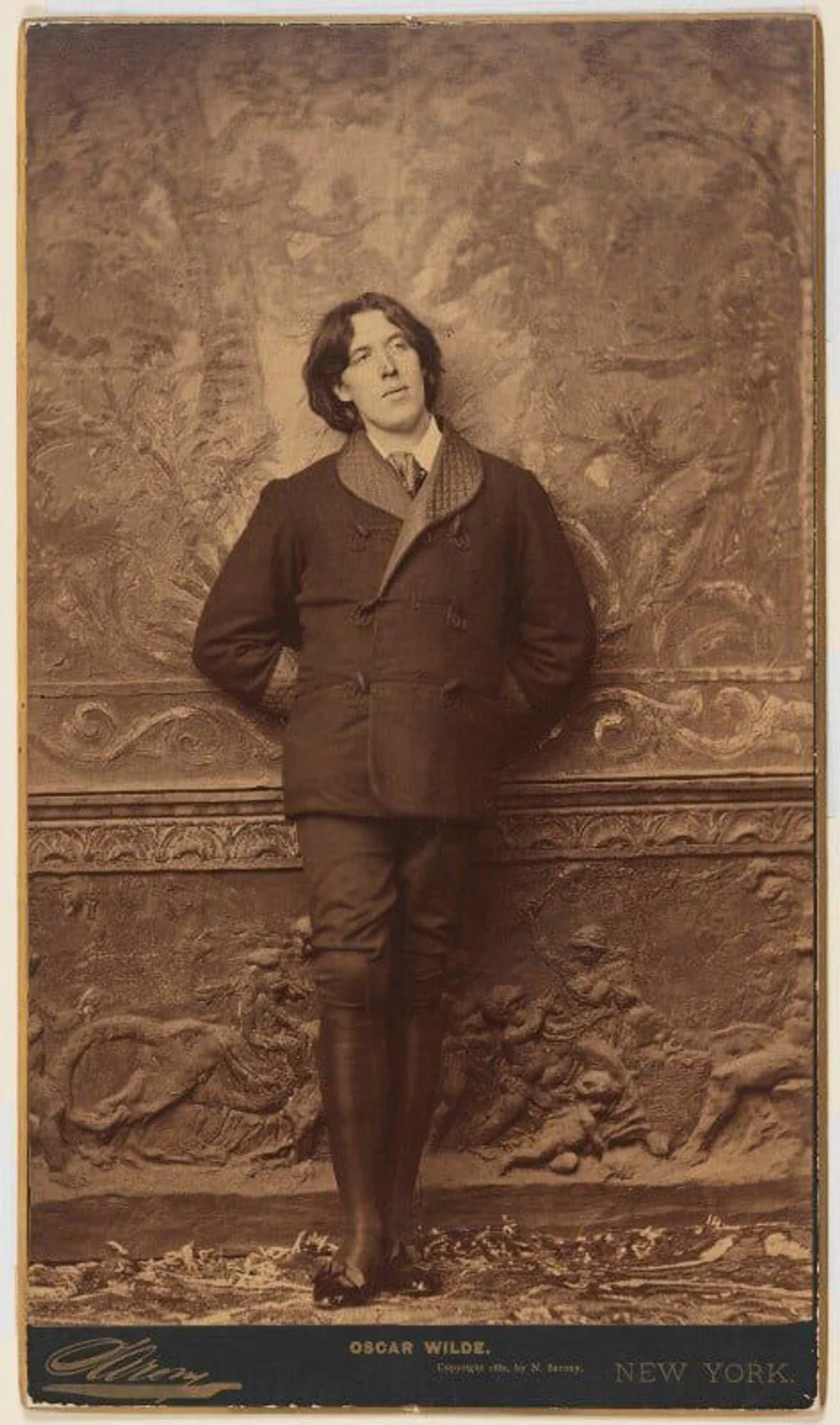 Свою лепту в популяризацию смокинга также внес Оскар Уайльд. Писатель одним из первых решил отойти от классического прочтения костюма — он нередко эпатировал публику необычными цветовыми решениями и материалами. Например, в свой тур по США он отправился в нетипичном для эпохи изумрудно-бархатном пиджаке с простеганными лацканами.