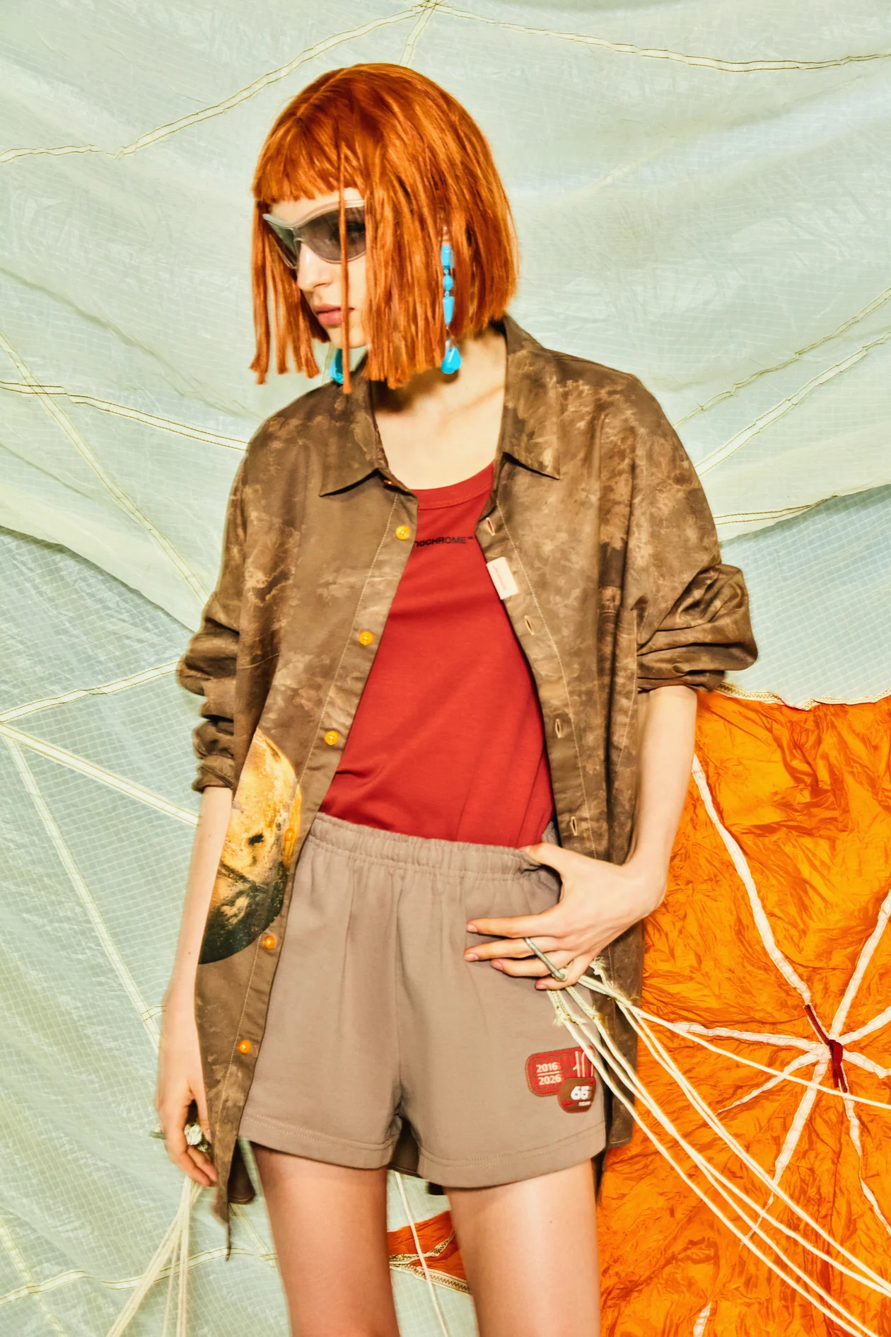 Рубашки и свитшоты выполнены с вареным эффектом — мы стремились передать ощущение, будто эти вещи прошли через другую среду, инопланетную. Они выглядят как побывавшие на Марсе и сохранившие на себе след этого опыта. Марсианский принт проходит через ключевые изделия коллаборации — рубашки, футболки и свитшоты. К тому же все модели, созданные в коллаборации с Роскосмосом, дополнены жаккардовыми нашивками. На свитшотах и куртках они расположены там же, где делают нашивки на скафандрах, — это усиливает ощущение связи с реальной космической экипировкой.