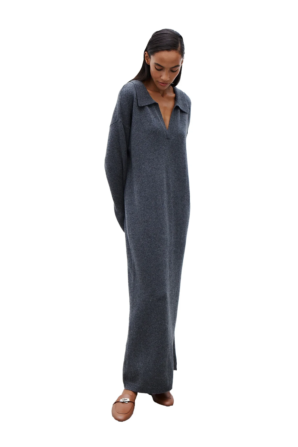 Объемное платье-поло с V-образным вырезом из 100%-го премиального кашемира. Обновленная версия культового бестселлера бренда. Мягкий силуэт идеально подойдет как для повседневных образов, так и для особых случаев.