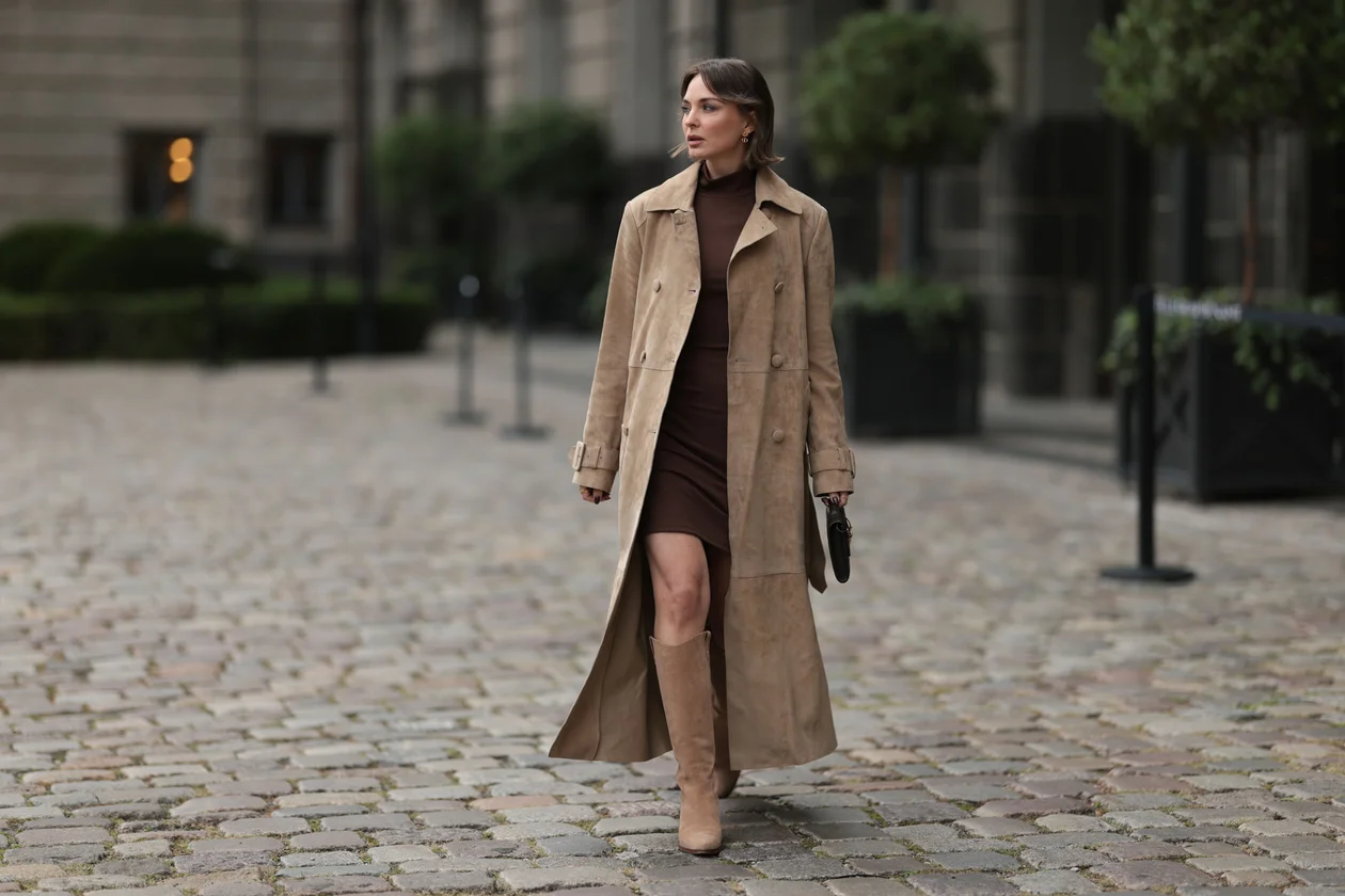 Дарья Леушина, автор телеграм-канала «Стильный стилист стилизует», предлагает обратить внимание на полуприлегающие и свободные прямые силуэты. Подчеркнуть талию можно с помощью пояса, джемпера или другой трикотажной вещи.