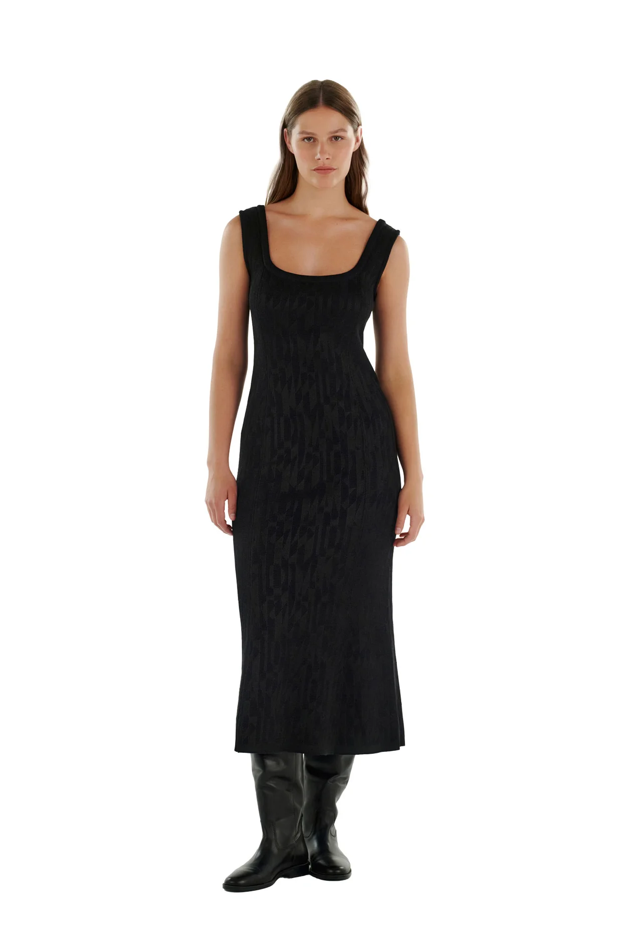 Платье миди глубокого черного цвета на широких бретелях. Мягкая смесь шерсти мериноса и вискозы очень комфортны. Это платье можно носить как самостоятельный айтем, а можно в качестве базы для многослойного образа.