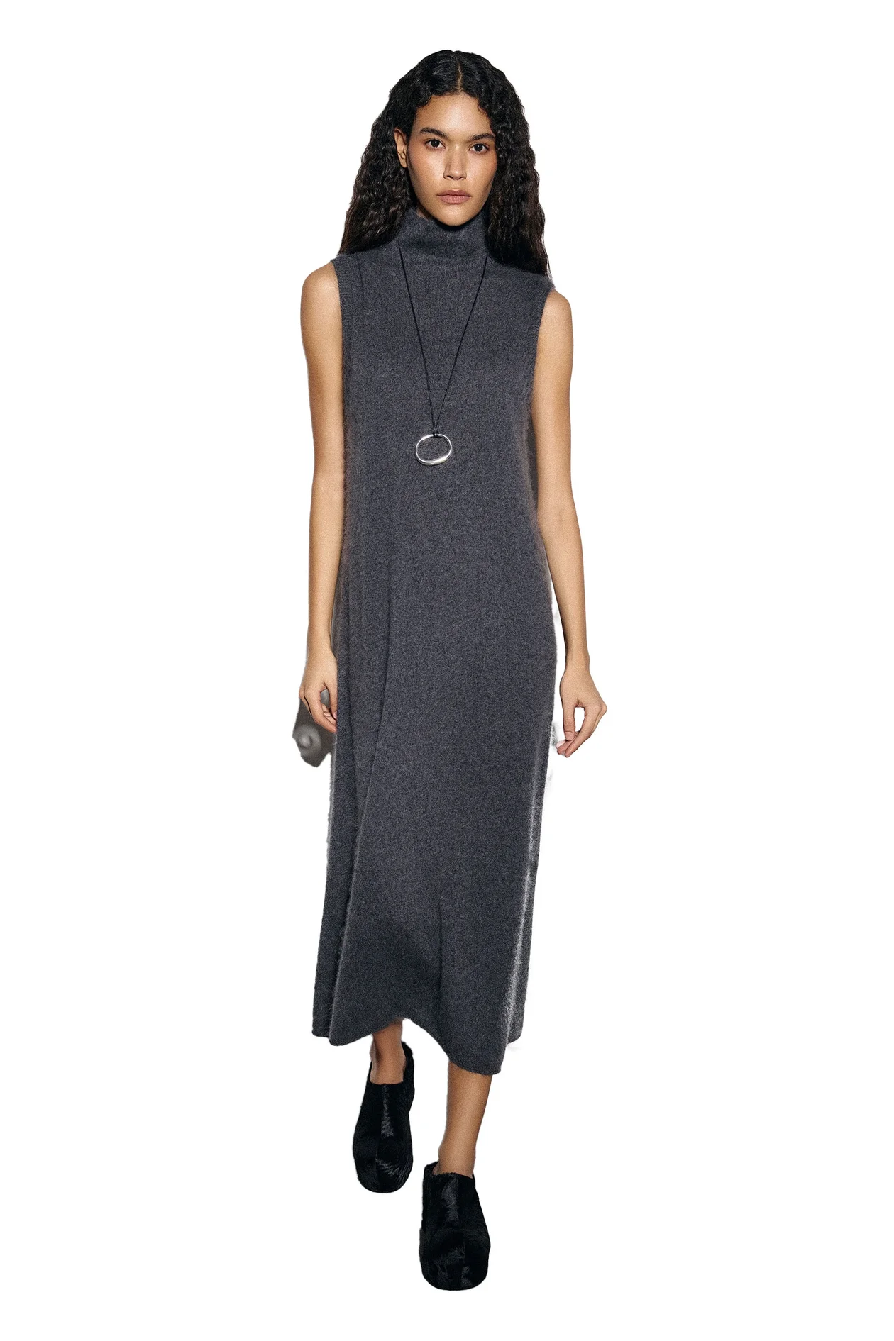 Платье из 100%-го кашемира, обработанного по технологии brushed cashmere. Создавая ткань, мастера вычесывают наиболее длинные и тонкие волокна пряжи, поэтому вещь получается непревзойденно мягкой. Такое платье станет инвестицией в комфорт и элегантность и создаст основу для любого зимнего образа.