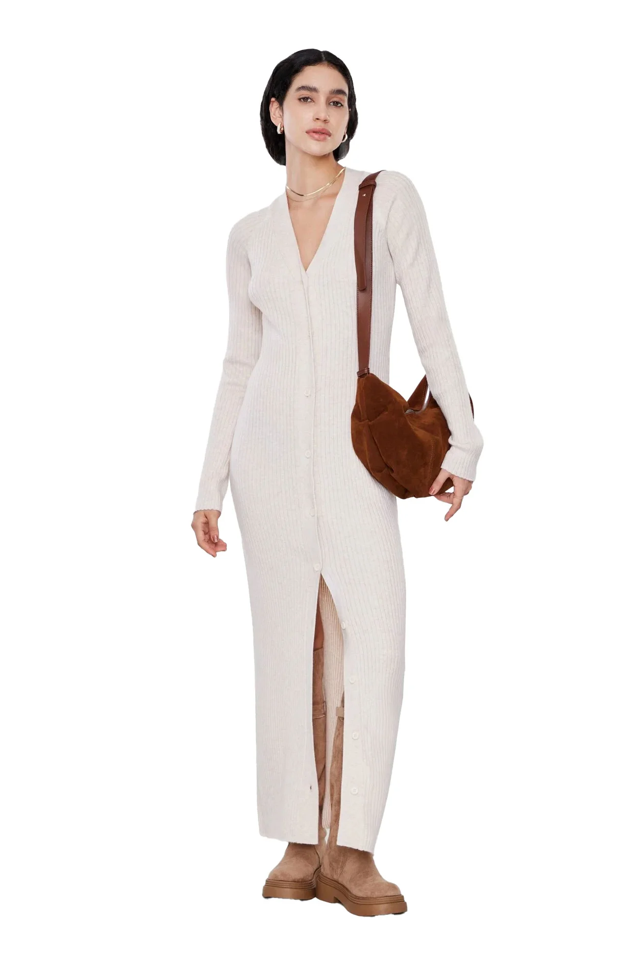 Например, свободное платье Ushatava из нашей подборки Дарья предлагает стилизовать в расслабленном формате с уггами и пуховиком. Или создать более элегантный образ с шубой и высокими сапогами. Если хотите добавить характера, соберите комплект с дубленкой и чопперами.