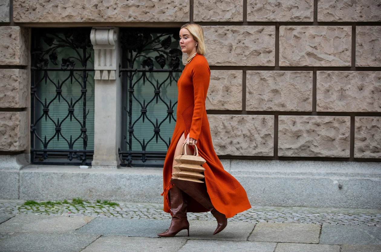 Дарья Леушина называет оптимальной длиной миди и мидакси. Они защищают от холода и хорошо работают в городских образах. А еще позволяют легко сочетать платье с обувью и верхней одеждой.