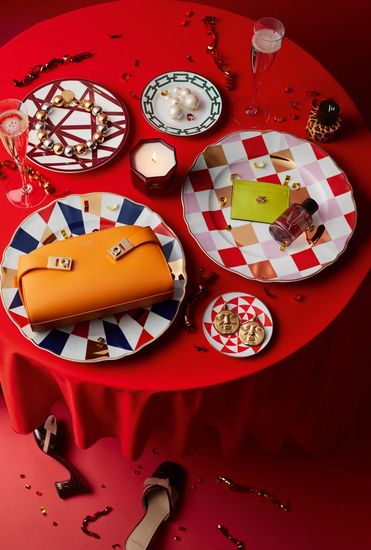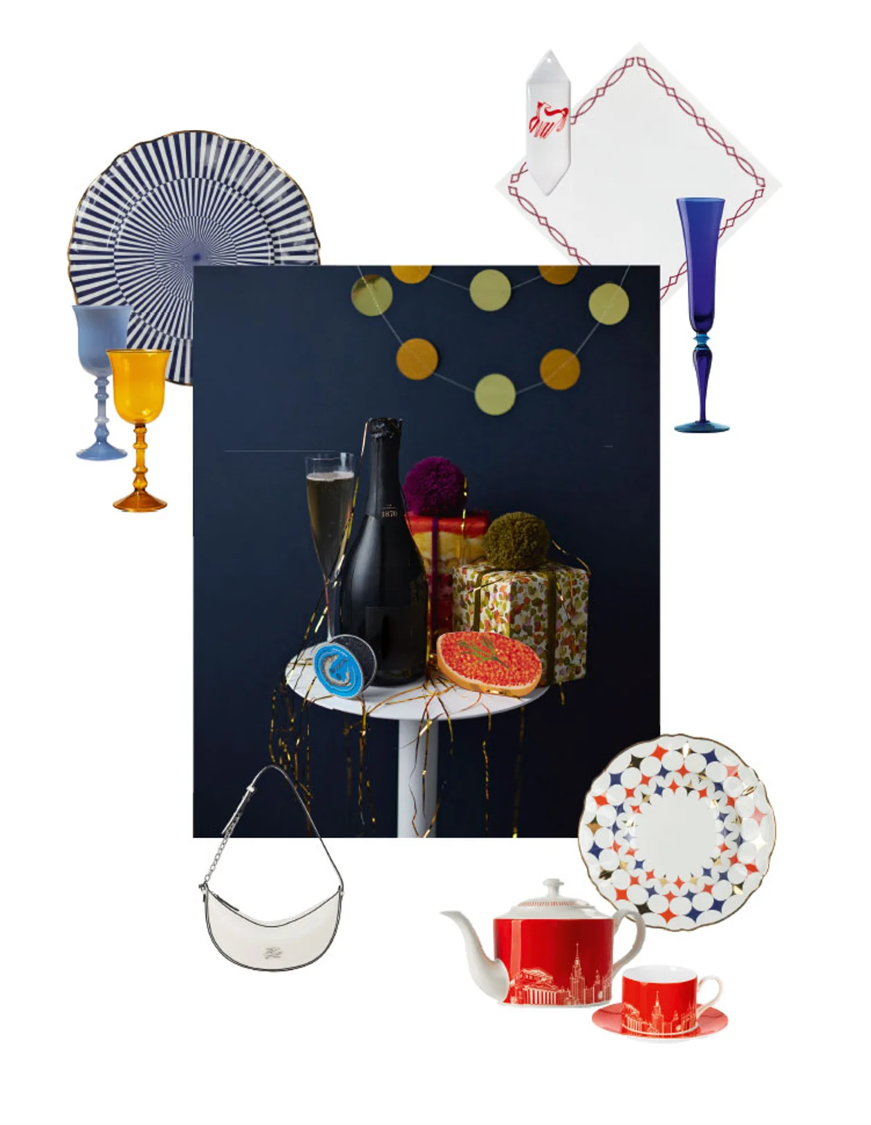 Керамическое и фарфоровое блюда, блюдце из фарфора, коллекция ABRACADABRA, BITOSSI HOME, фарфоровые тарелки, MISSONI и GINORI 1735, все BOSCOCASA; латунные серьги, визитница из нейлона, ETRO, BOSCO; ожерелье из акрила и латуни, пластиковые серьги, VANESSA BARONI, BOSCOFAMILY; кожаная сумка Hug mini, FERRAGAMO, туфли, VALENTINO, хрустальные бокалы, BACCARAT, все ЦУМ; парфюмированный мист для волос Virgin, 50 мл, THE ACT; ароматическая свеча Rosso Nobile Red Tourmaline, 500 г, DR. VRANJES FIRENZE; духи Felina Extrait de Parfum, 60 мл, NEW NOTES, «РИВ ГОШ».