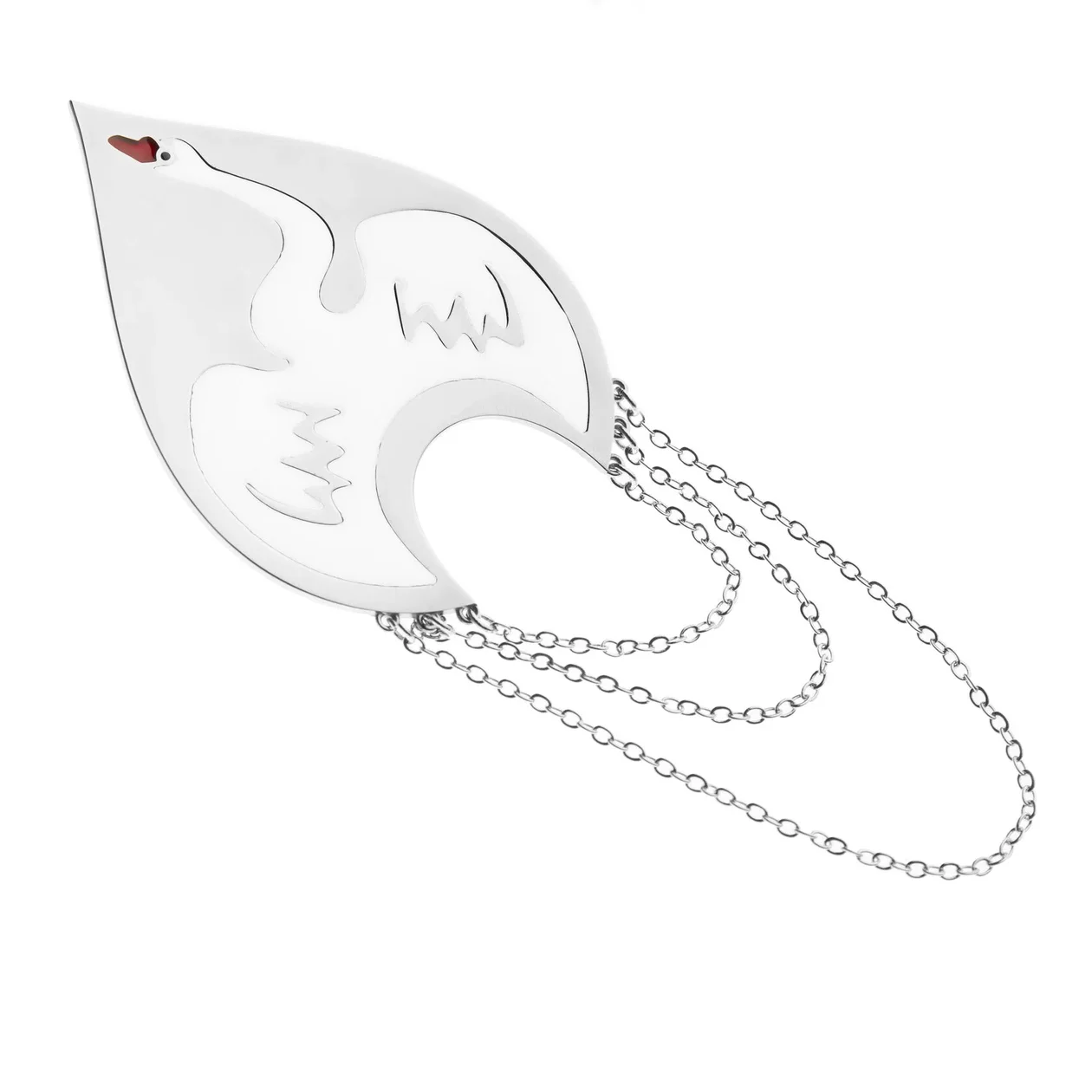 В коллекции соединили русский кокошник с параметрическими сетками, а в соавторстве с каллиграфом Antagonist Calligraphy получилось не музейно, а вполне себе актуально. Брошь «Царевна Лебедь» — бронза, гальваника, холодная эмаль — расписана вручную. Кокошник 5 × 4 см, танцующие цепочки отзываются на каждый поворот головы. Длина с цепочкой 10 см — размах тот самый, чтобы чувствовать себя главной на любом мероприятии. Царевной можно быть не только в сказке, но и на Мясницкой.