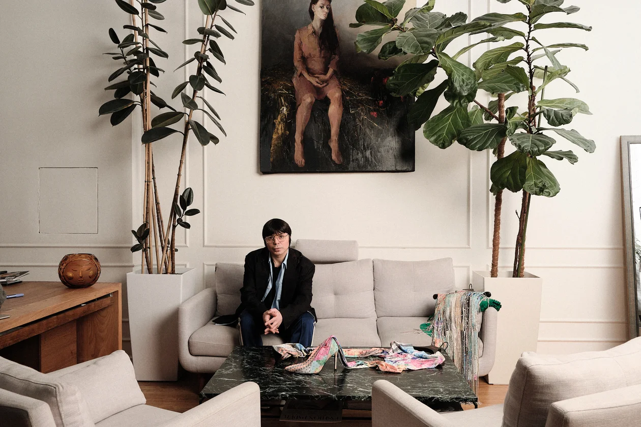 «Я переехал в Москву из Тбилиси, это прямо стихийно произошло, без подготовки. Благо у меня была профессия парикмахера. Я оканчивал Академию «Долорес», даже два раза. И меня взяли вип-мастером в салон красоты на Кутузовском. Я очень быстро работал, потому что не «молился над головой», и у меня были классные клиенты. Я их начал обшивать, ведь я всегда знал, что хочу именно этого — шить одежду. У меня сидела тетушка портниха-надомница, и ей очень нравилось со мной работать, потому что для меня она шила особенные вещи. В какой-то момент мне предложили поставить в салоне свою витрину, причем не только с одеждой, но и с обувью, я ведь и обувь шил. И я понял, что салон красоты отнимает слишком много времени, уже пора отправляться в свободное плавание. Потом много лет мои подружки-клиентки приезжали ко мне домой. Я уже делал показы, но своего шоурума у меня не было.