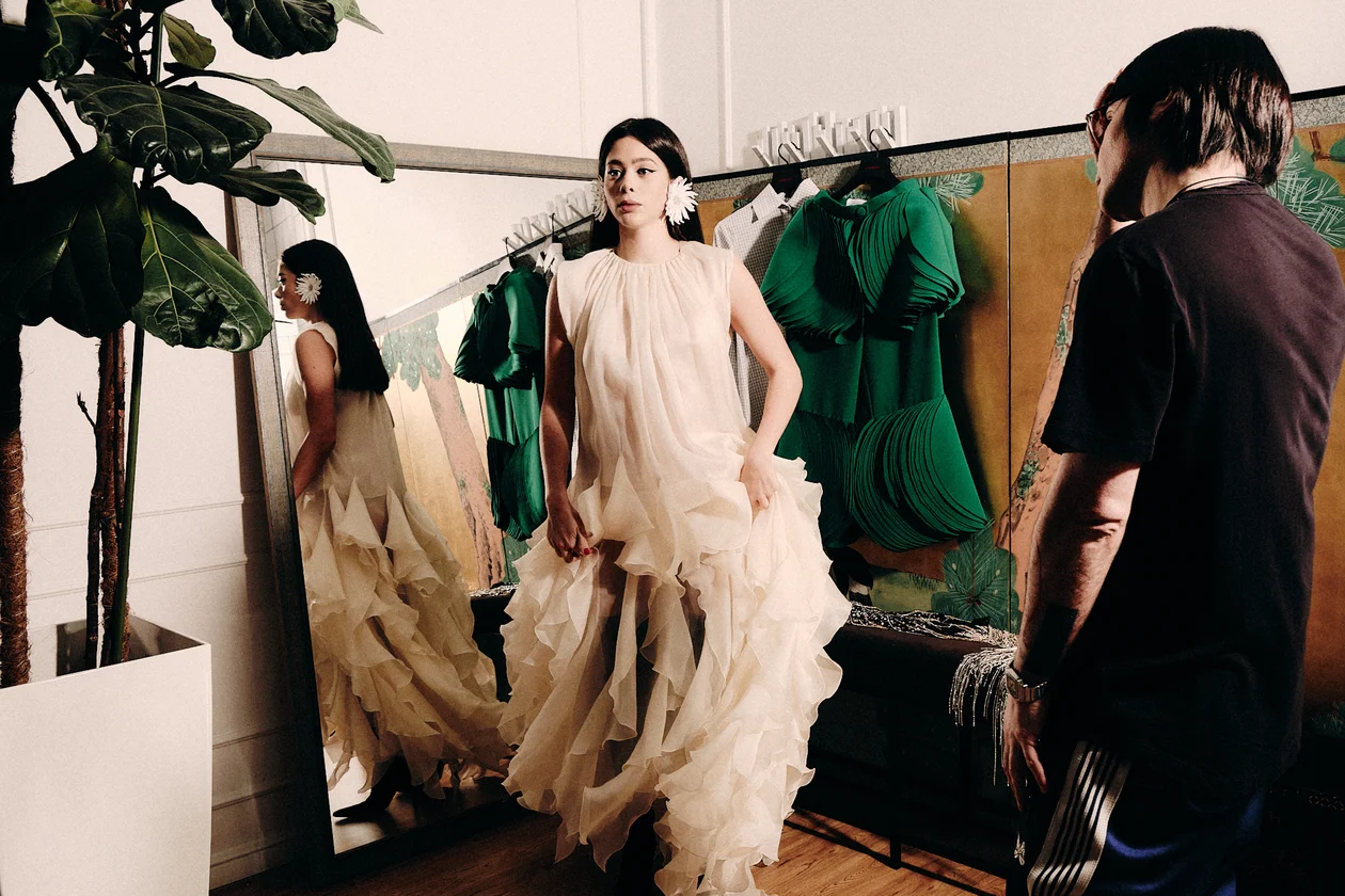 Мне предлагали ехать в Париж делать показы, я говорю: «А зачем?» Я лучше эти деньги потрачу здесь. Живу ведь здесь, и лучше эту красоту покажу нашим. Я был одним из победителей конкурса Vogue Talent в Милане. Мы пару раз туда приехали со своими вещами. Ну и что мне там делать? Им все нравится, но они хотят делать заказы — в таких цветах и в таких размерах. Для этого же целая корпорация должна быть. Я лично к этому не готов, мы так не работаем. Сам еду, выбираю ткань, сам иногда подбираю нитки. Поэтому мы и работаем вот в такой салонной системе, и, если честно, у меня нет желания открывать офлайн-магазин, только чтобы это красиво висело.