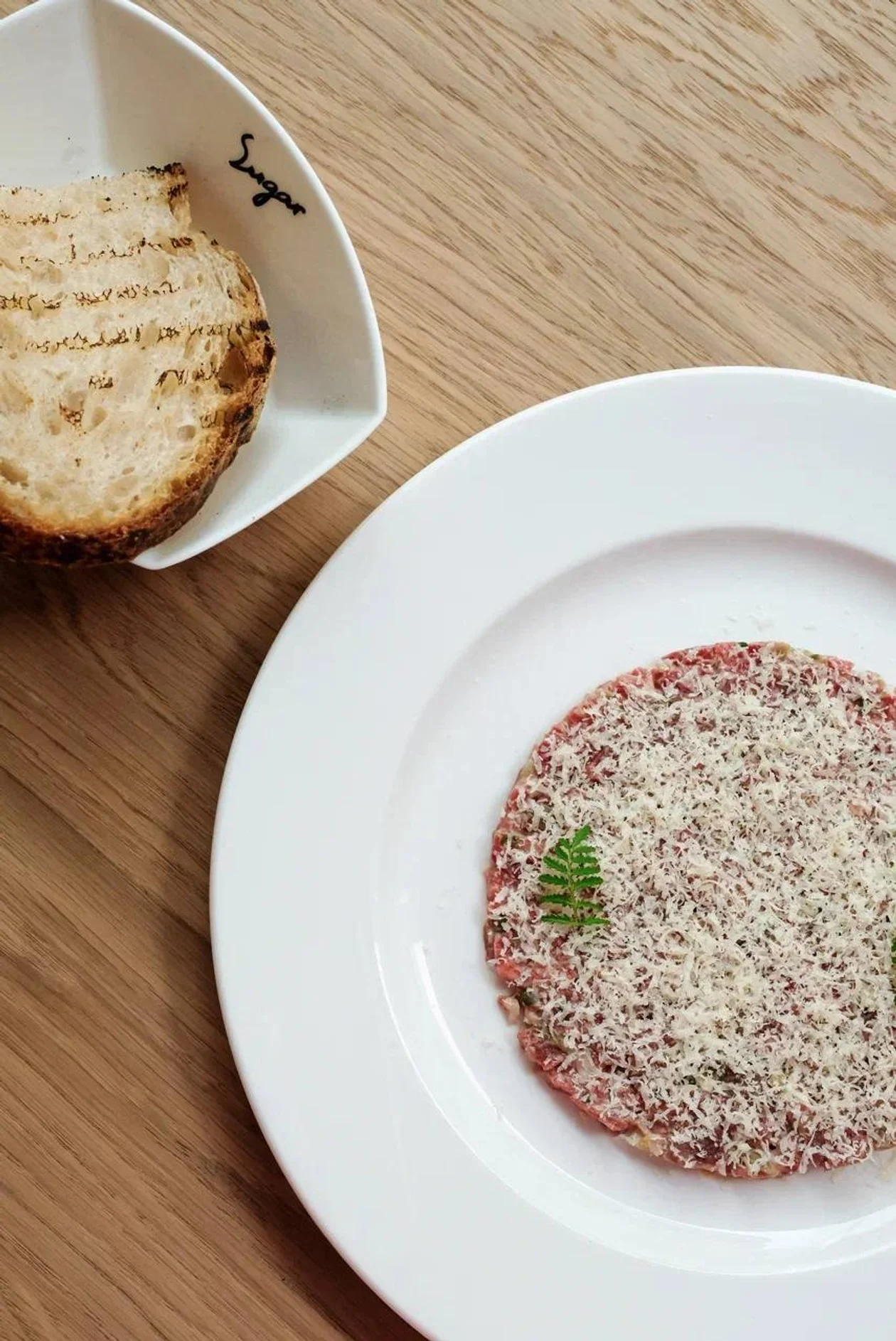 В меню — комфорт-фуд с акцентом на мясо: тартар, фирменный бургер, несколько видов стейков плюс зеленый салат и картофель фри. Артем говорит, что это его guilty pleasure.