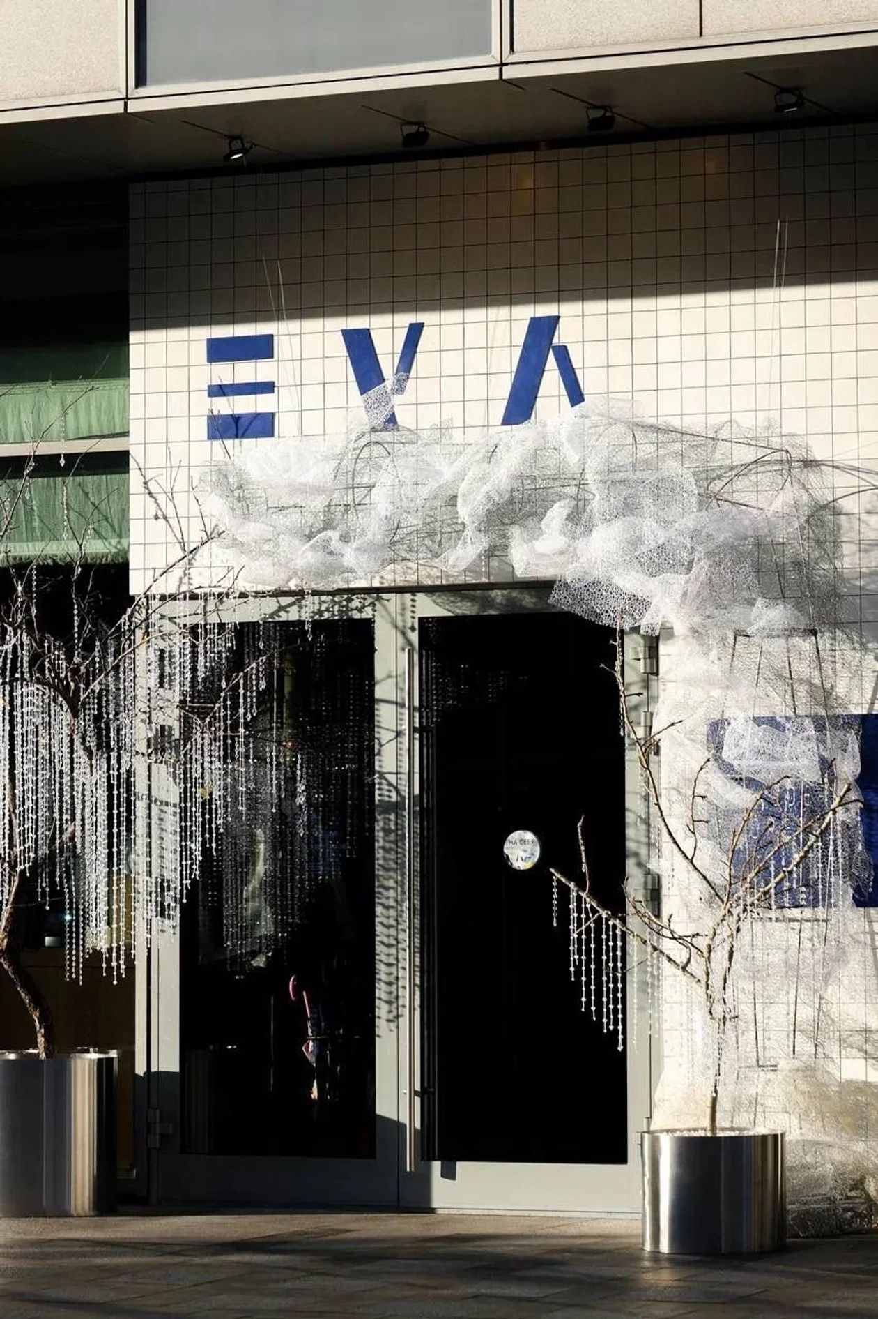 Следом новый образ примерила Eva. «Несмотря на то что в Eva сейчас идут изменения в интерьере, нам хотелось показать её нежной, взять за основу что-то лёгкое и воздушное. Понимая, что в этом году есть тренд на капли, мы решили усложнить себе задачу и собрать их вручную. Сейчас на деревьях плюс-минус две с половиной тысячи капель», — делится с «Москвичкой» Милена Миллениум, креатор и декоратор входной группы Eva на Большой Грузинской. В разговоре с нами Милена упомянула другие свои проекты, среди которых уже знакомый нам Loro, Mamie, Salone pasta&bar и другие рестораны, о которых поговорим дальше, — каждому из них отдаём приз зрительских симпатий.
