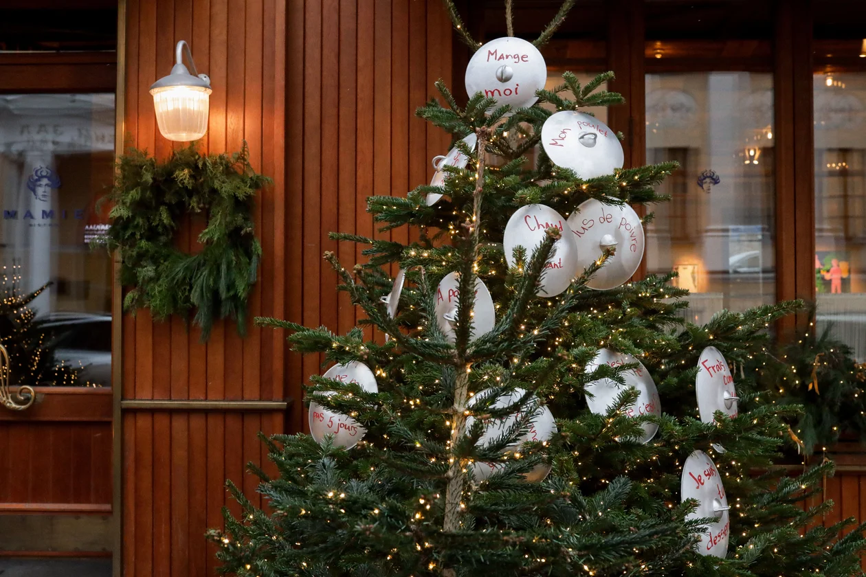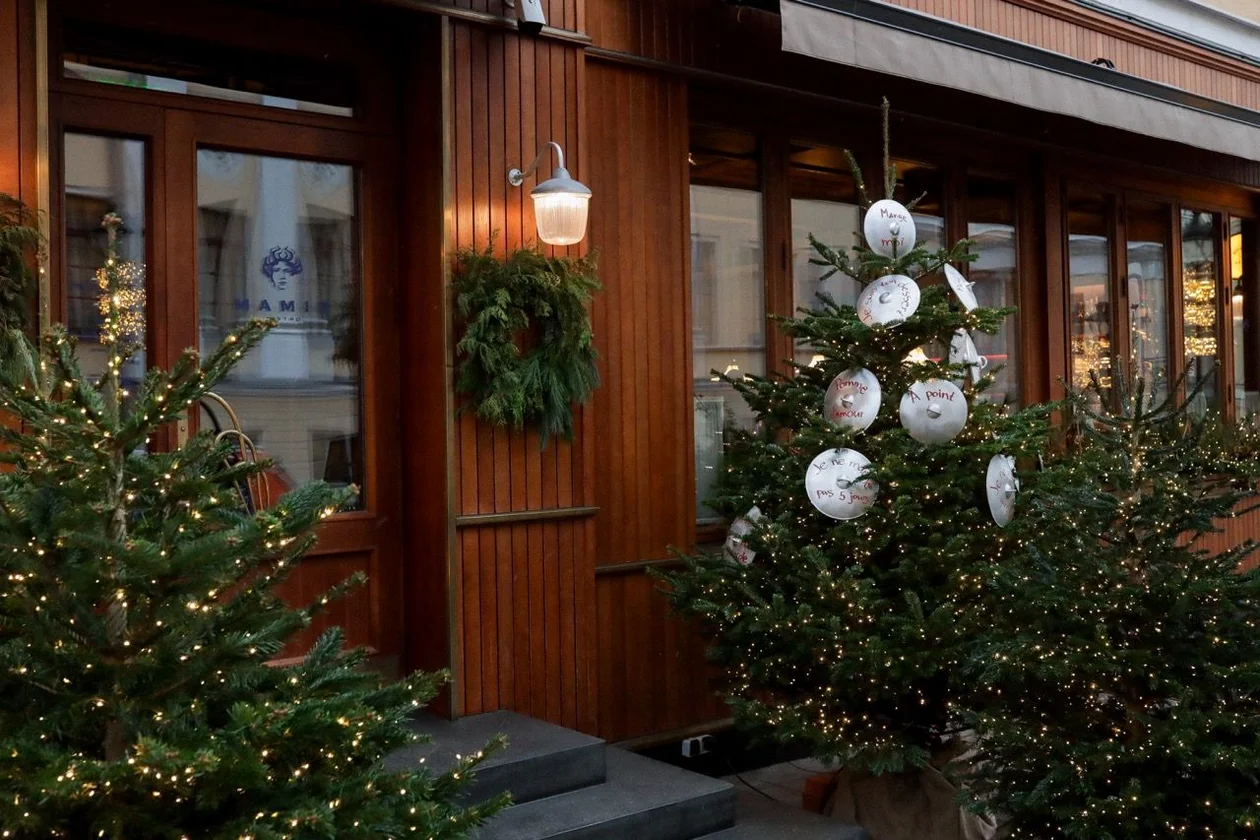 Mamie на Большой Никитской стал ещё одной находкой «Москвички». Вместо новогодних игрушек команда Lucky Group решила похулиганить и примерить на ёлки алюминиевые крышки с французскими посланиями: mange moi, he suis ton desert, pomme d‘amour. Очевидно, что шалость удалась!