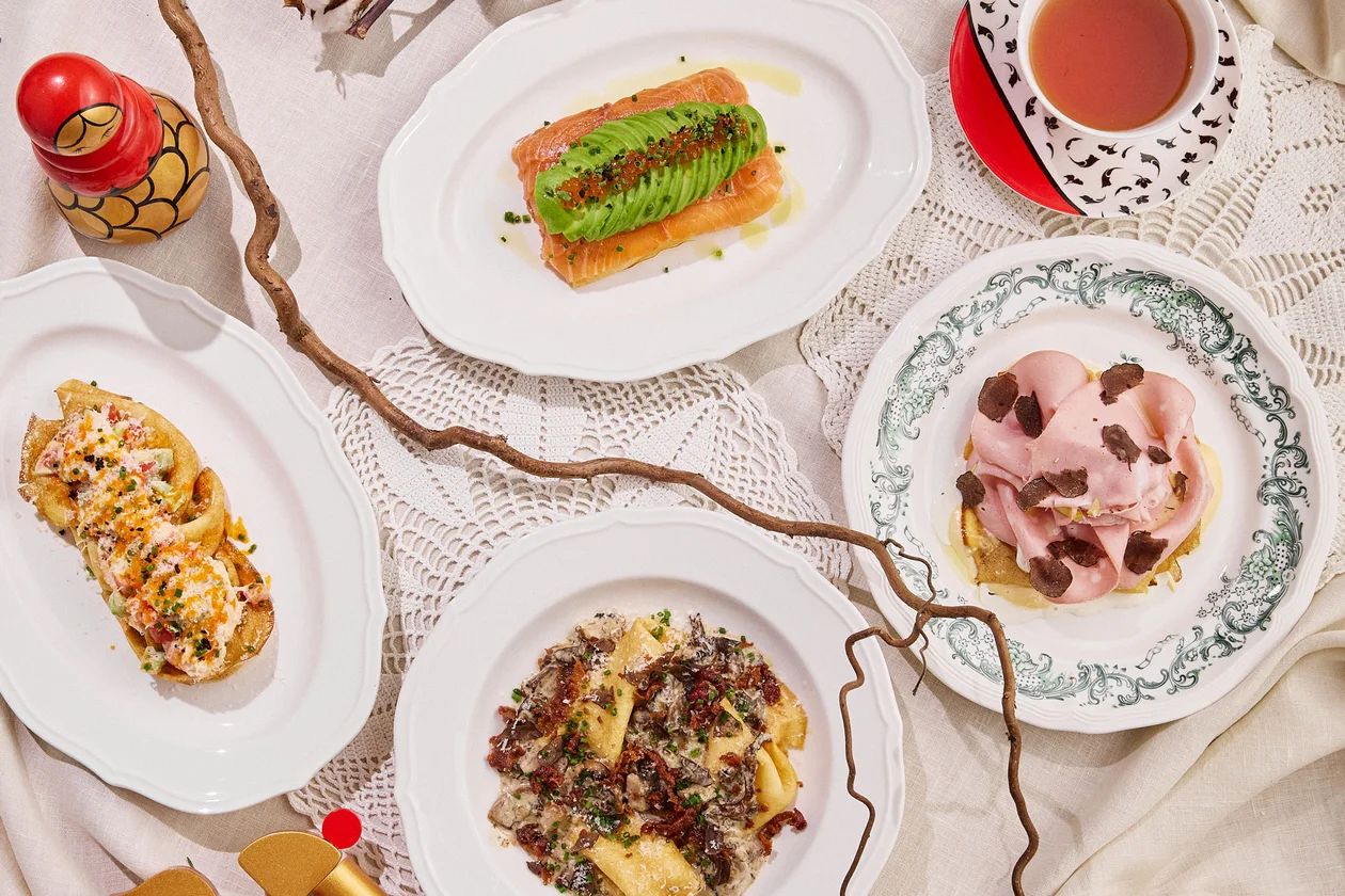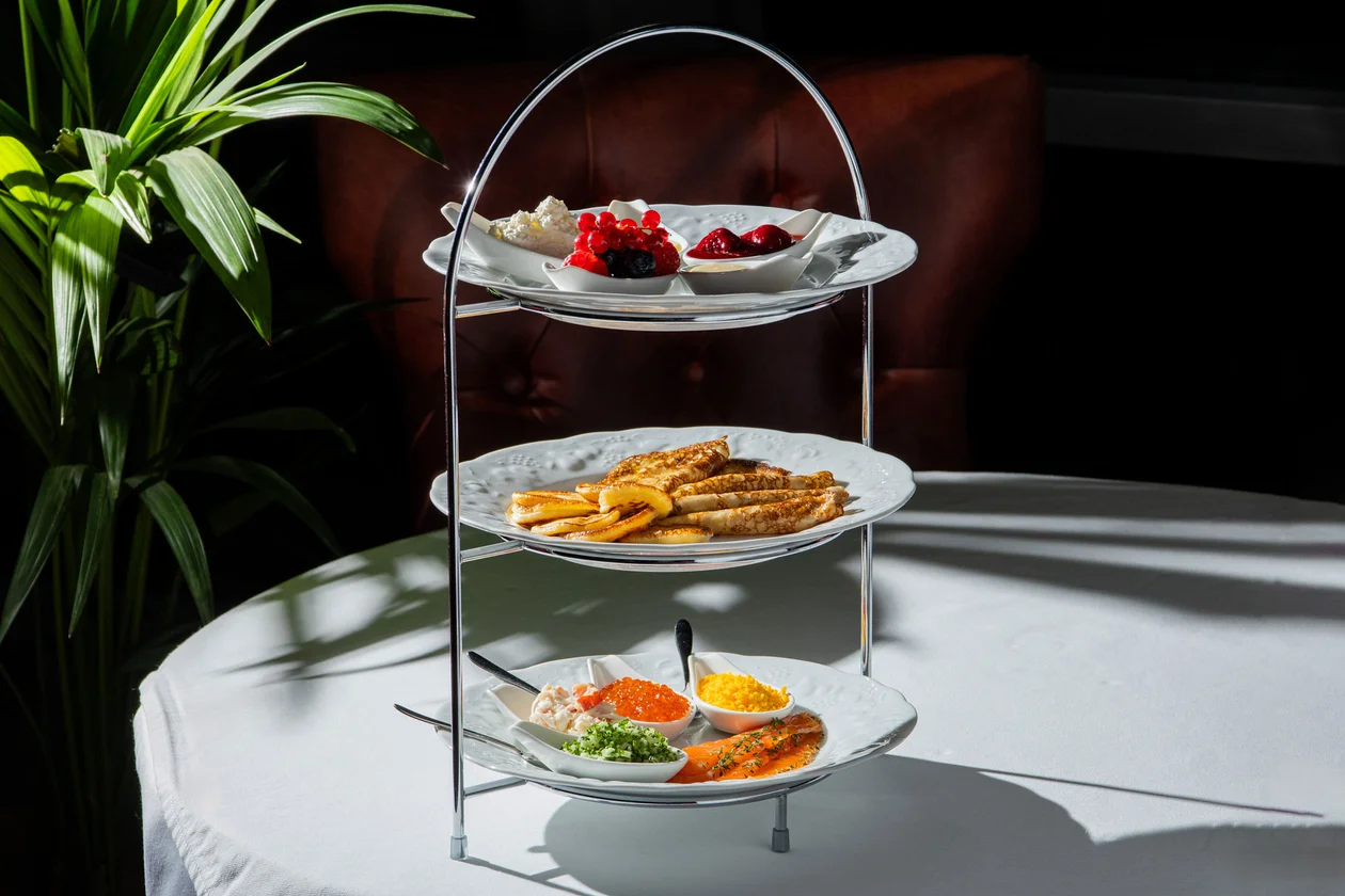 Бренд-шеф «Гранд Отеля Мойка 22» Николай Хвалынский тоже подготовил праздничное меню. В «Чайной гостиной» появилось два красивых сета — соленый и сладкий — с классическими начинками, которые сервируют на подносах с хохломской росписью. А в панорамном Bellevue — этажерки с блинами и оладьями, дополненные красной икрой, лососем, мясом краба, сметаной, творогом и медом. Также в отеле можно попробовать две авторские настойки — на перце с морковью и на сосне с медом.