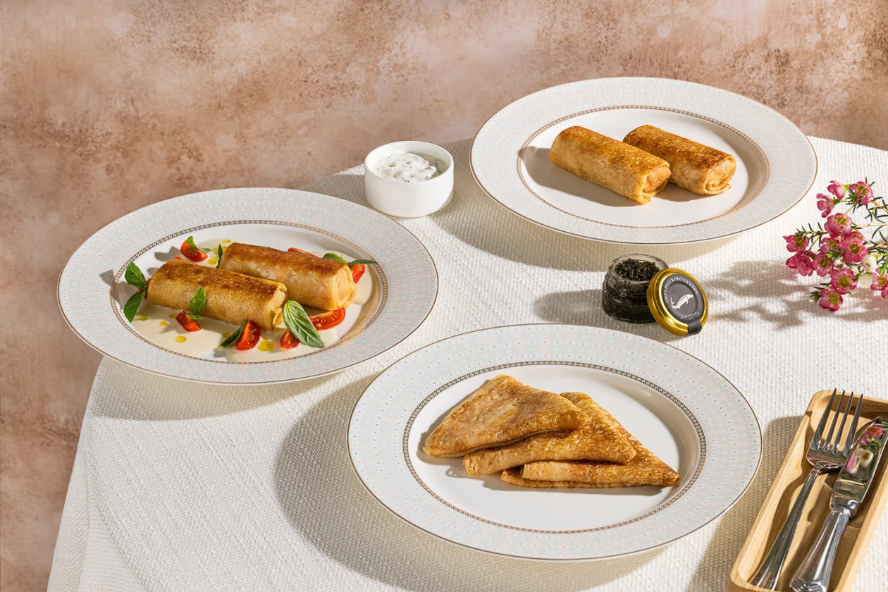 Специальное меню ресторана-кондитерской Kalabasa открывают сытные версии блинов с мортаделлой, песто и пармезаном, с вешенками, яйцом пашот и копчено-сливочным соусом, а также с камчатским крабом — под французским сливочным соусом бермонте и с горкой красной икры. Хедлайнер десертного меню — нежный блинный торт тирамису. А для домашнего праздника команда подготовила блинный рулет с яблочно-коричной начинкой, который доступен к заказу до конца Масленицы.