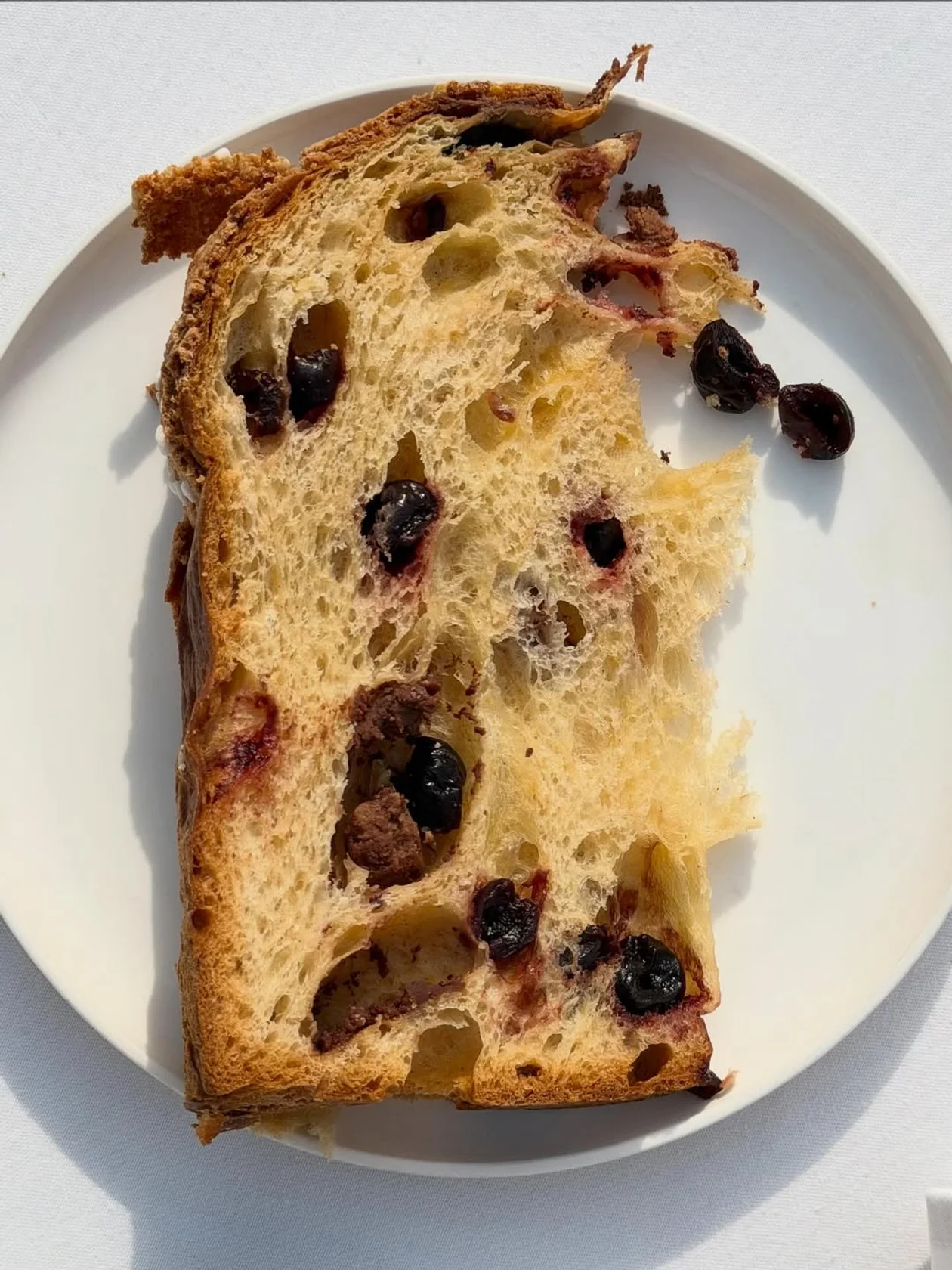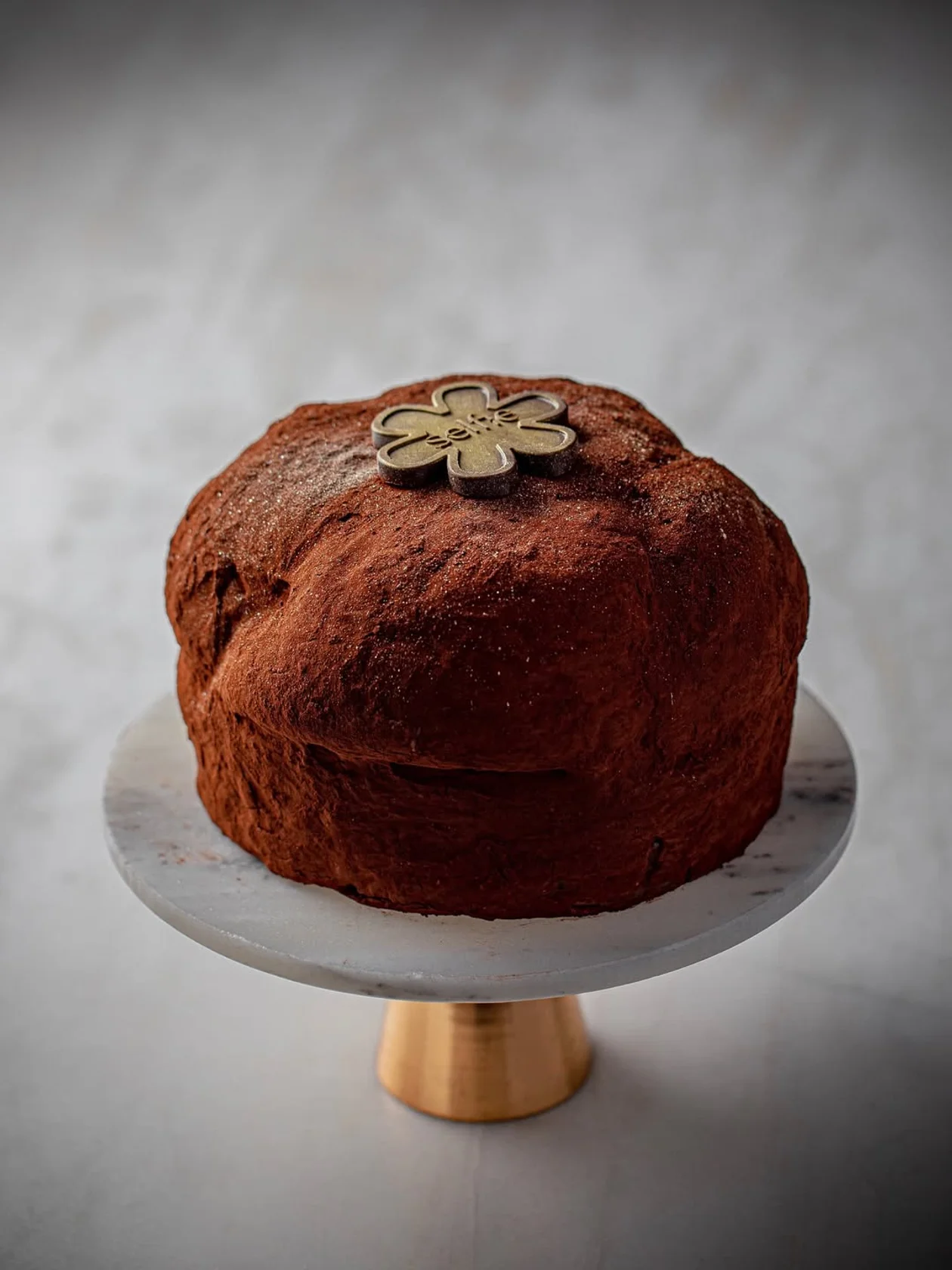 А у Selfie кулич похож на большой шоколадный трюфель. В разрезе — кремовая текстура, изюм, цукаты и ананас, а сверху — бархатный слой какао. Тесто готовят на итальянской пшеничной муке по аналогии с панеттоне.