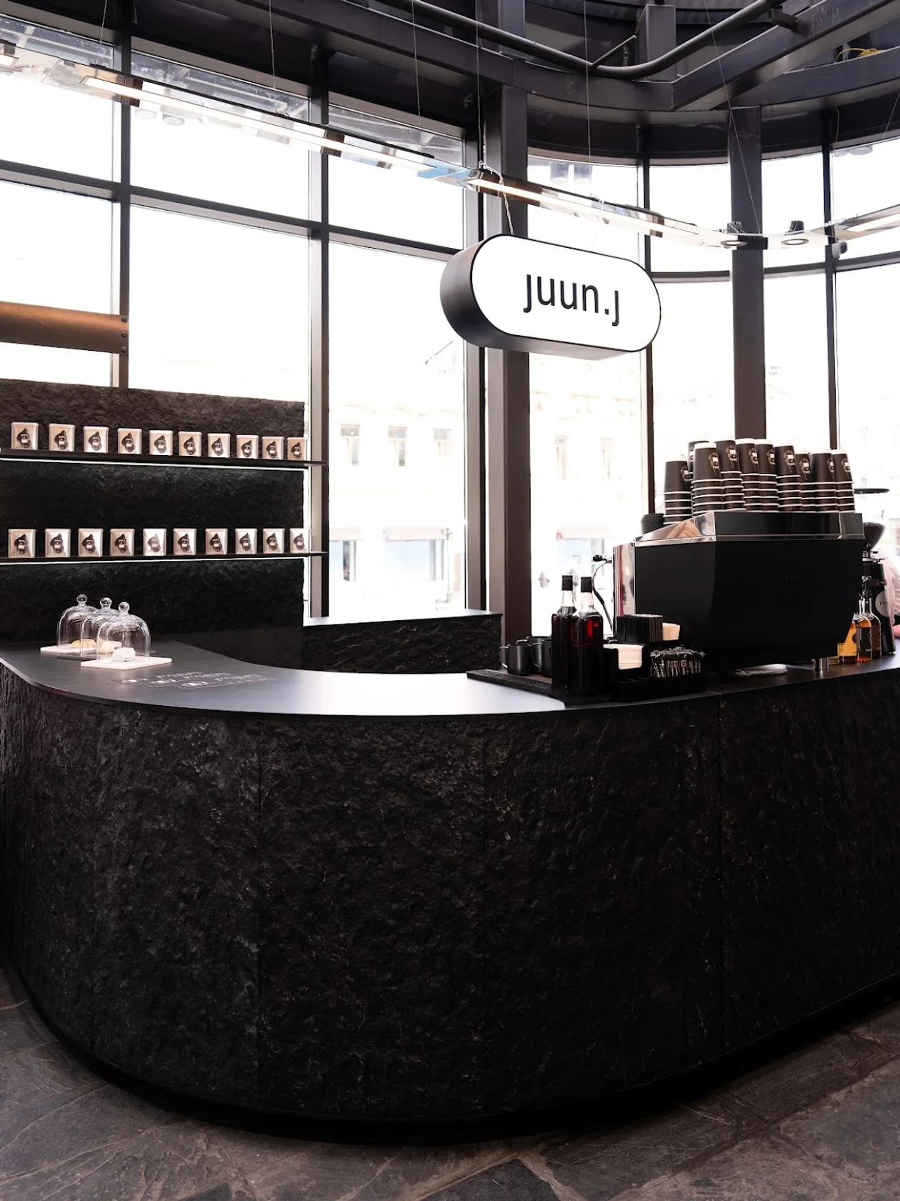 Juun. J решил стать чуть заметнее и на месяц развернул поп-ап с напитками и десертами на первом этаже ЦУМа. Заказать ходзича-латте, юдзу эспрессо-тоник или что-то из десертов могут все желающие — заодно и поближе познакомиться с брендом. А клиентов корнеров Juun. J на втором и третьем этажах угощают — за покупки выдают жетон на комплиментарный десерт и напиток.