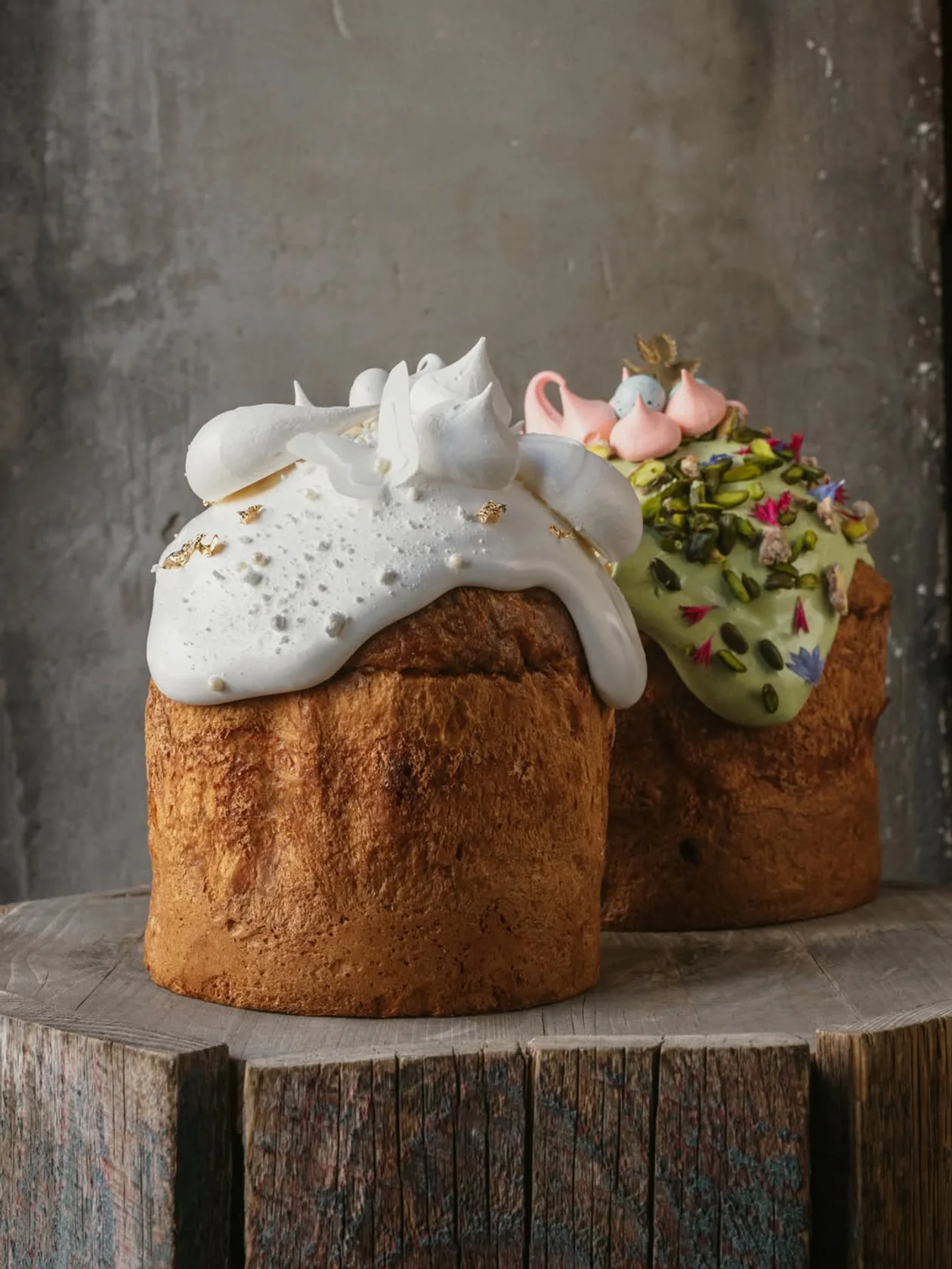 Результатом творческого союза Pinch и Ugolek стали два кулича в нежных пастельных оттенках. Предзаказы открыты на версию с фисташковой шапкой, шоколадными яйцами и васильками, а также на кулич с сахарной глазурью и сусальным золотом, с вафельными бабочками и безе.