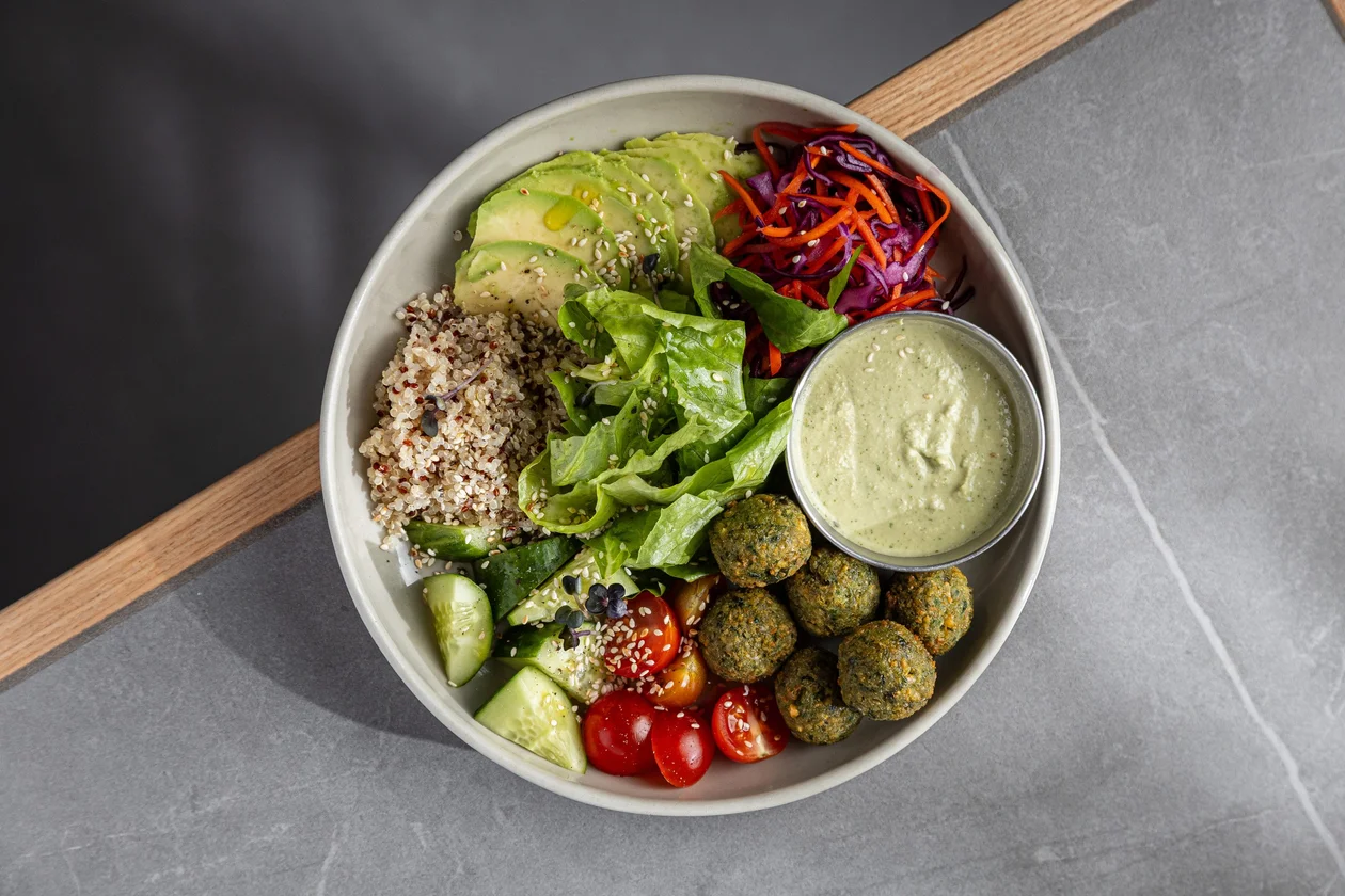 Постно не значит скучно. Доказываем это на примере кафе Natura, где ингредиентам животного происхождения придумали достойную альтернативу. Бренд-шеф Анастасия Шульгина предложила интересные решения: например, вместо сливок добавлять крем на основе кешью, а за сметану выдавать соус из грецкого ореха. Так в меню оказались крем-суп из цветной капусты, вареники с картофелем и грибами, винегрет, боул с фалафелем, батат фри и овсянка с голубикой.