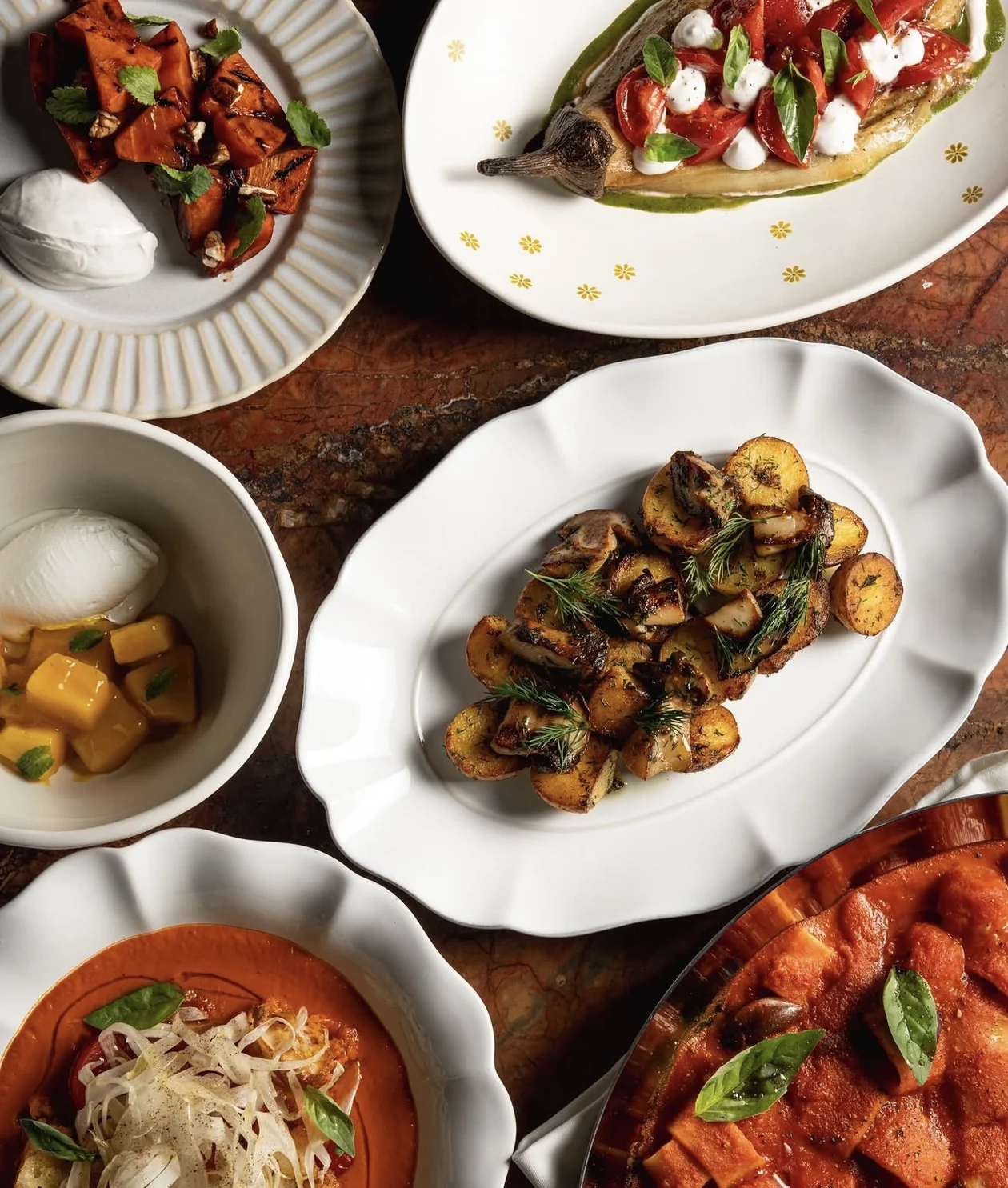 В ресторане Phantom звездного трио Пинский—Истомин—Лосев традиционно делают ставку на открытый огонь — и постное меню идеально рифмуется с этой концепцией. В центре внимания — блюда из печи: печеный картофель с белыми грибами à la pomodoro, морковь в соусе барбекю и запеченный ананас с кокосовым мороженым, суп из перцев пикильо с фенхелем и