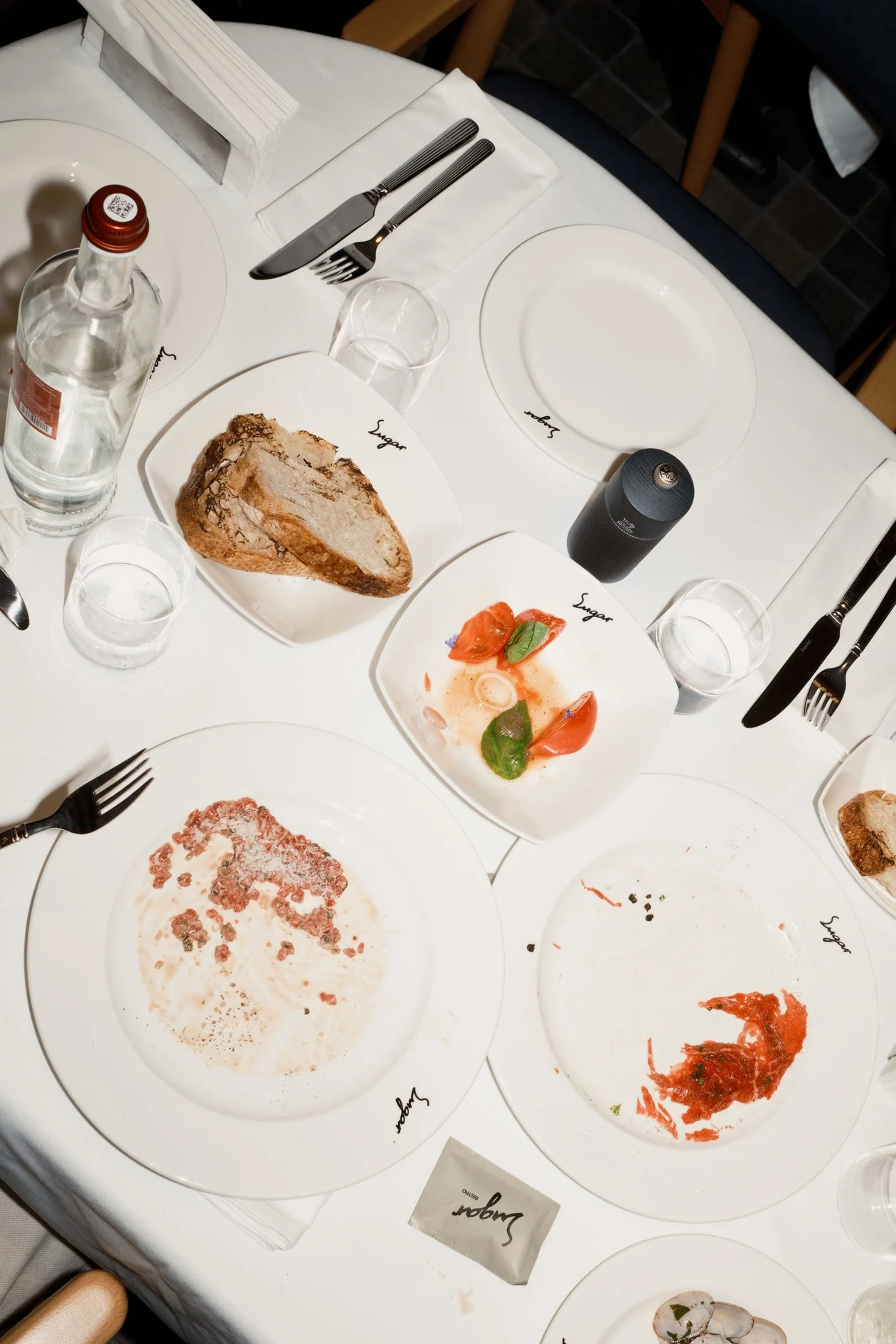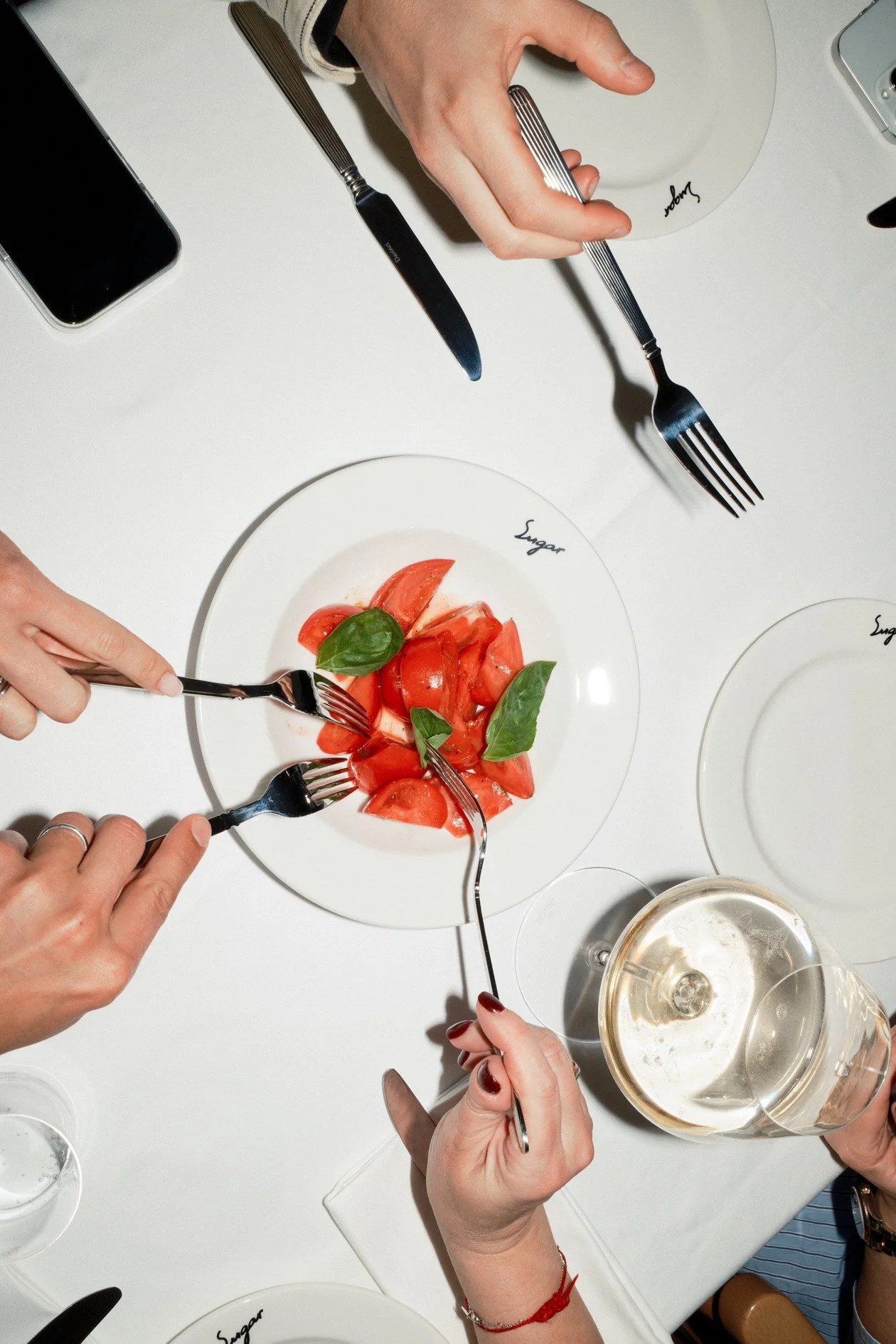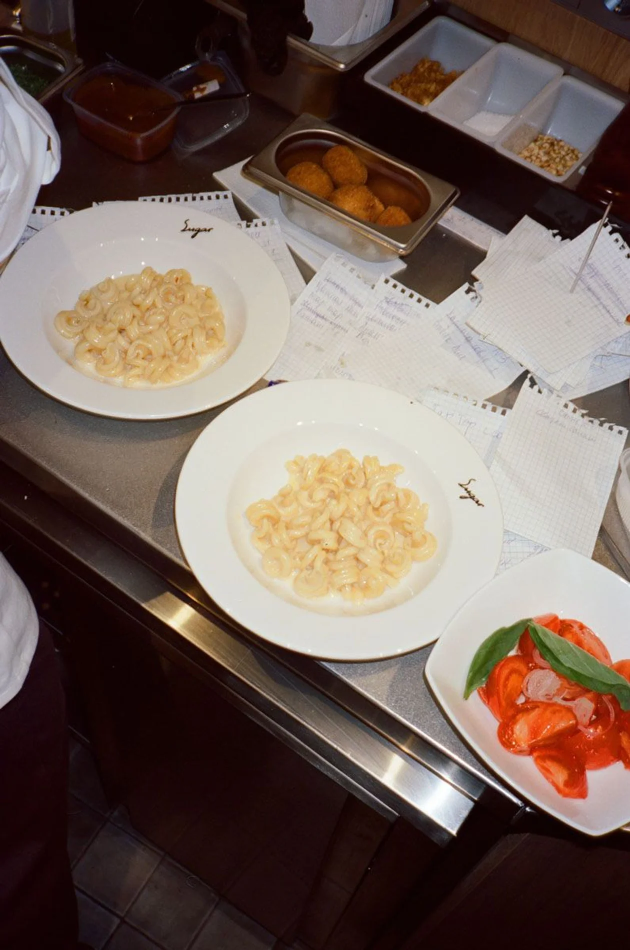 Меню — под стать интерьеру: легкое, понятное и без перегруза. В общем, Артем сделал ставку на комфорт-фуд с акцентом на мясо — всё, как предпочитает он сам. Правда, на пре-опенинге мы заметили, что вместо стейков в тарелках чаще всего мелькали крудо из гребешка с соусом цитронет, тартар из говядины, фирменный бургер Sugar, сибас аква-пацца и, конечно же, паста с трюфелем. Десерты, как и лишние калории, Москва не особо жалует, поэтому предлагают всего три варианта: чизкейк Сан-Себастьян с бархатной сердцевиной, панна-котту в окружении свежих ягод и тарт татен.