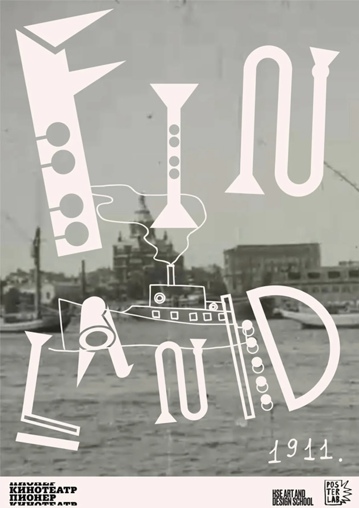 Этот постер о Финляндии 1911 года разрабатывался к фильму, в котором нет какой-либо музыки или слов. Только кадры путешествующей по Финляндии камеры. Однако несмотря на то, что никакого звукового сопровождения в этом фильме нет, ты все равно слышишь звучание страны, в гудении паромов и плеске морских волн о пристани и причалы. Гул людей, которые шагают по улицам.