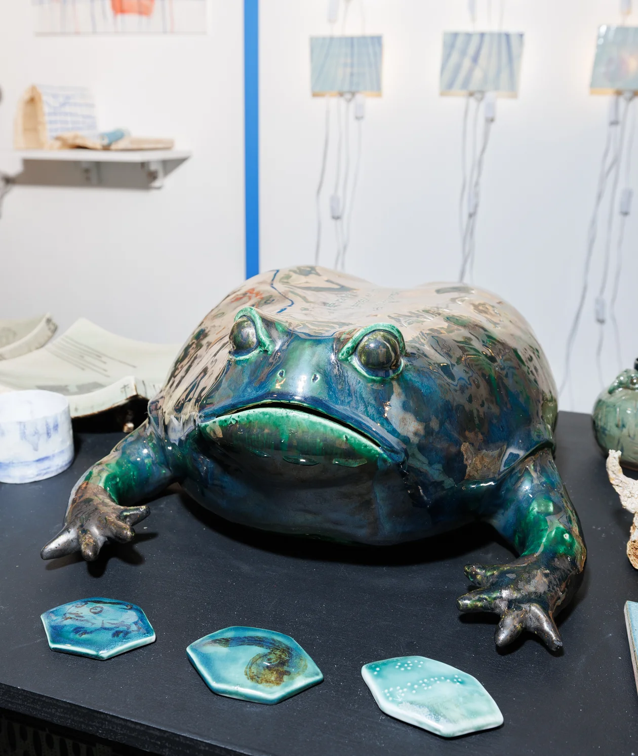 Чувствую себя как ломовой конь — монтирую большую инсталляцию к выставке Salon de 4ceramics в Музее декоративно-прикладного искусства. Ее демоверсию вы могли видеть на моем стенде. Ярмарка помогла заработать денег, оценить свои силы, сопоставить себя с коллегами и интересами посетителей. На самом деле продал всего понемногу. Одних зацепили изящные подсвечники из фарфора, других — гончарные сосуды-птички, третьих очаровали плитки с лягушкой и цаплей — и это, кстати, была первая покупка искусства в жизни посетительницы.
