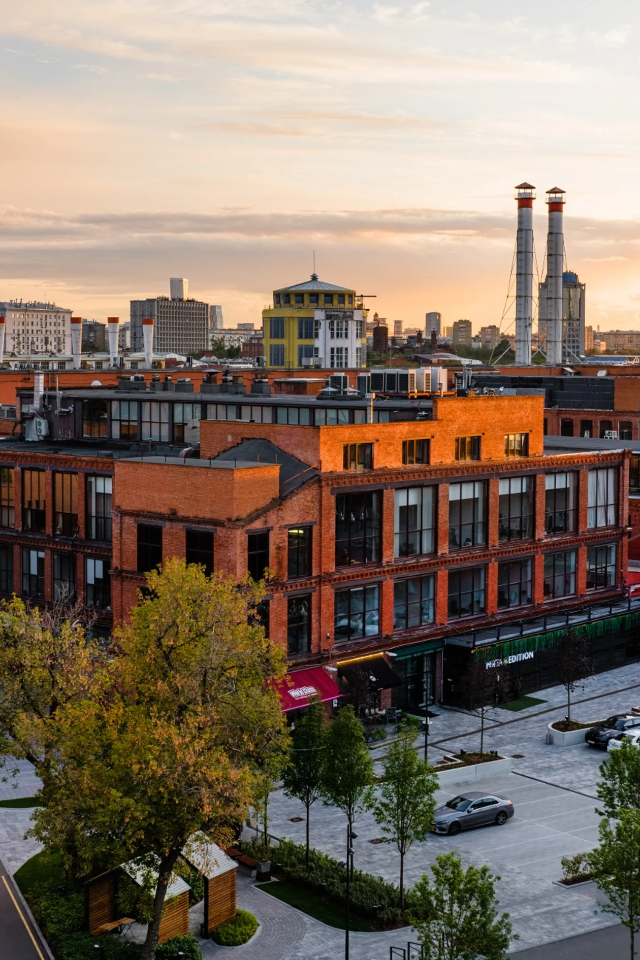У Трехгорной мануфактуры, или, если проще, Трехгорки, в отличие от дома Наркомфина, нет авангардной эстетики, но чувствуется энергия индустриальной эпохи. Когда-то здесь гудели станки, валил дым из труб, пахло краской. Сегодня здесь витает дух предпринимательства, а главным ароматом стал запах свежего кофе, переплетающийся с запахом благовоний из студий йоги.