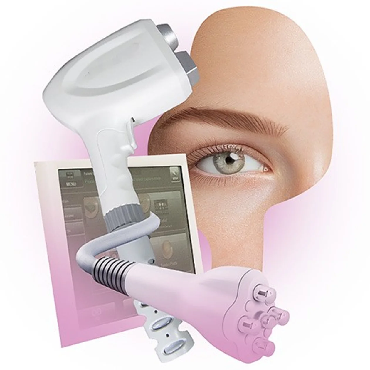 Основа протокола — микроигольчатый RF-лифтинг на аппарате со встроенной вакуумной системой в насадке, благодаря которой можно нетравматично и безопасно обработать подвижную и неподвижную часть нижнего и верхнего века вплоть до ресничного края и видимо с первой процедуры сократить кожный лоскут.